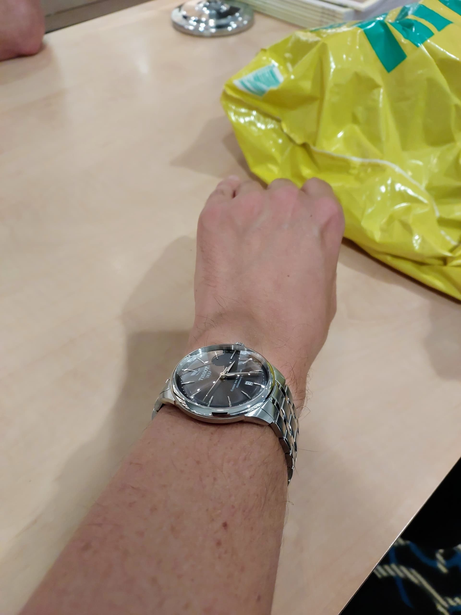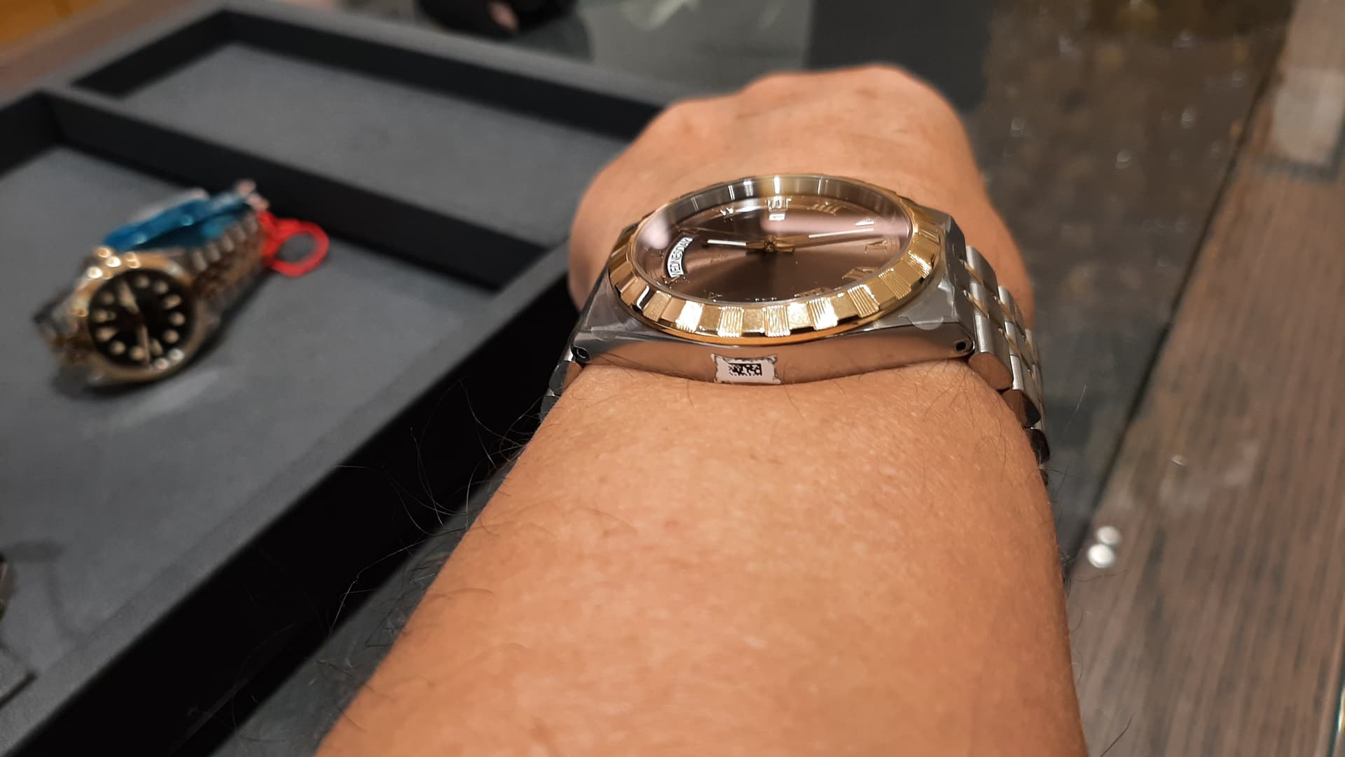 De winnaar van de dag viel echter bij een andere juwelier te bewonderen. En dat was deze Tissot Chemin des Tourelles in 39mm. Voelde echt fantastisch zittend op de pols en ruimschoots binnen budget. Die staat dus absoluut op de shortlist.