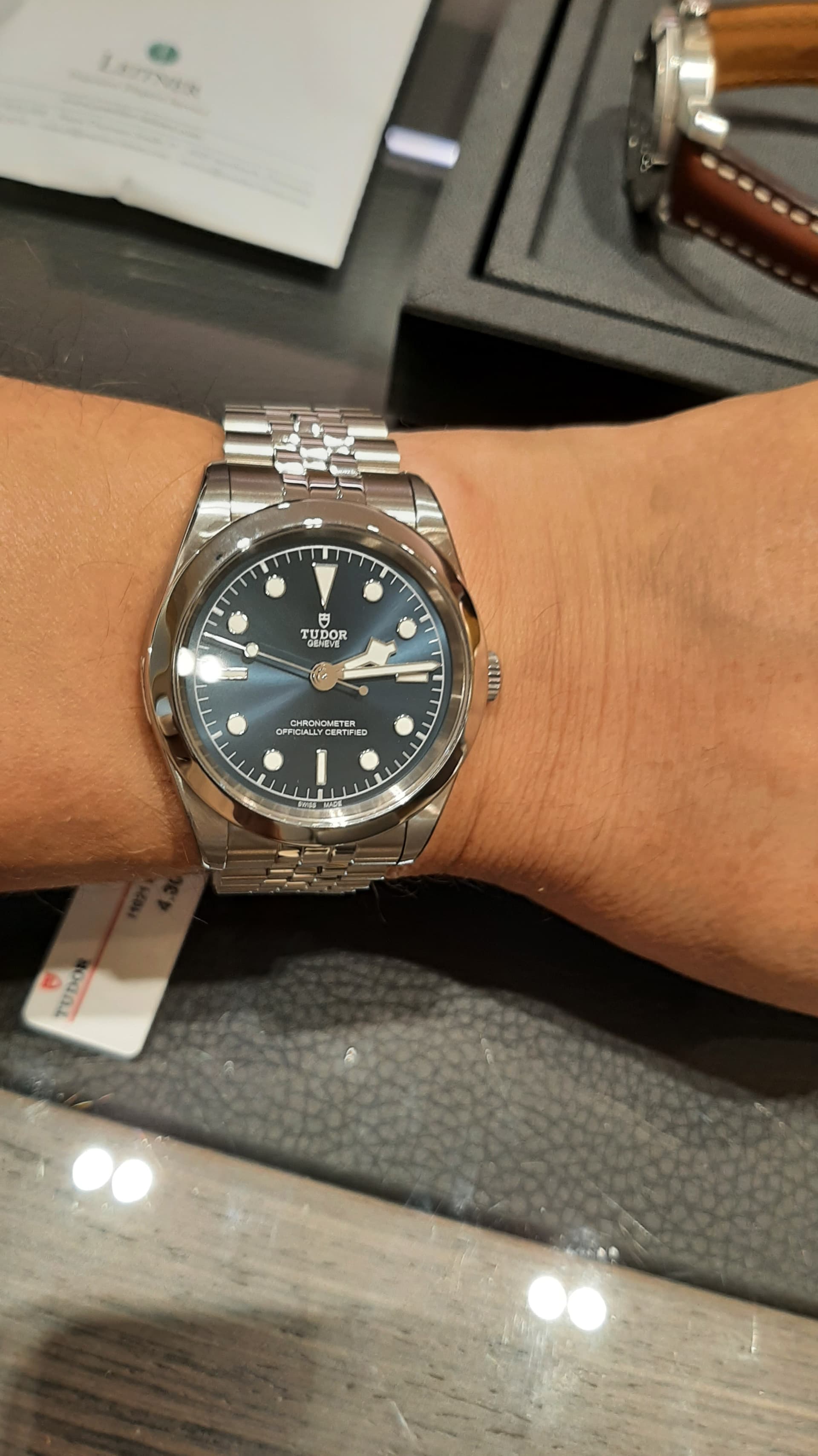 Een Longines Conquest 38mm gepast en een Tudor Black Bay. Gewoon eens om een feeling voor zulke horloges te krijgen. De Conquest sprak mij echt niet aan, vond m te klinisch overkomen.