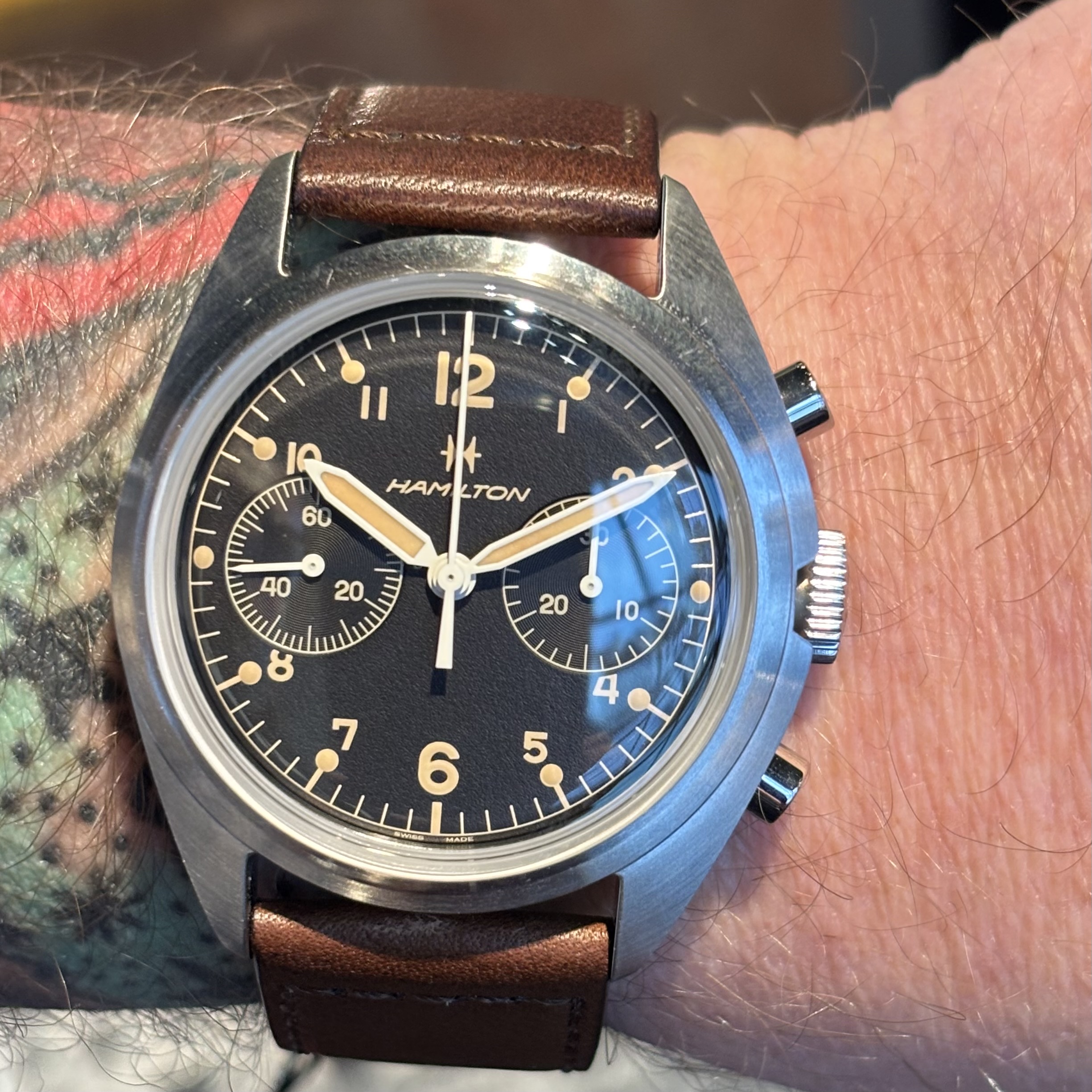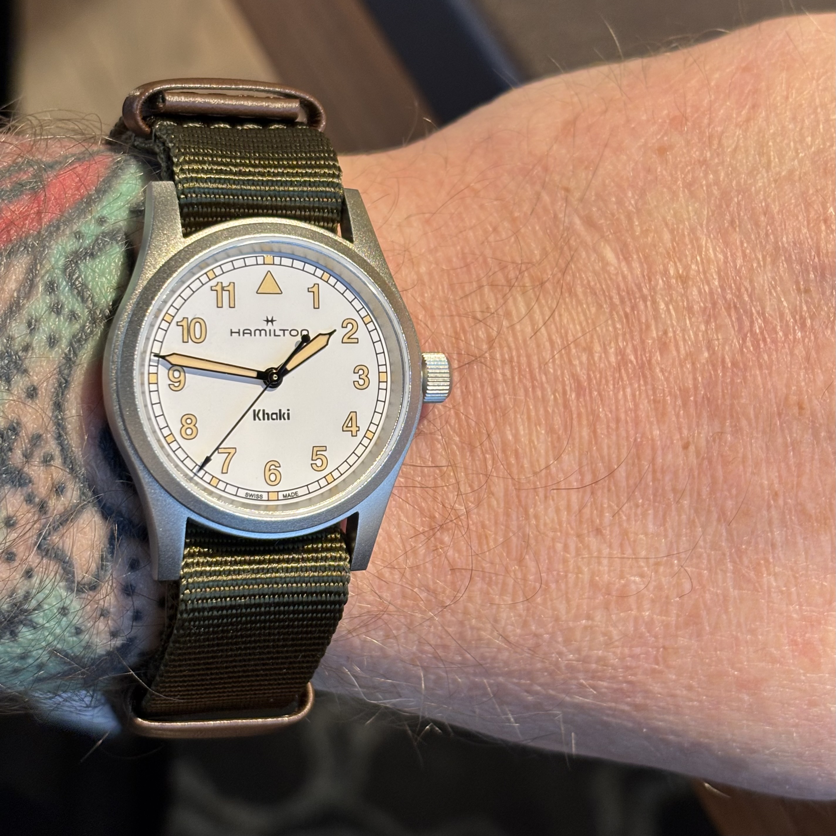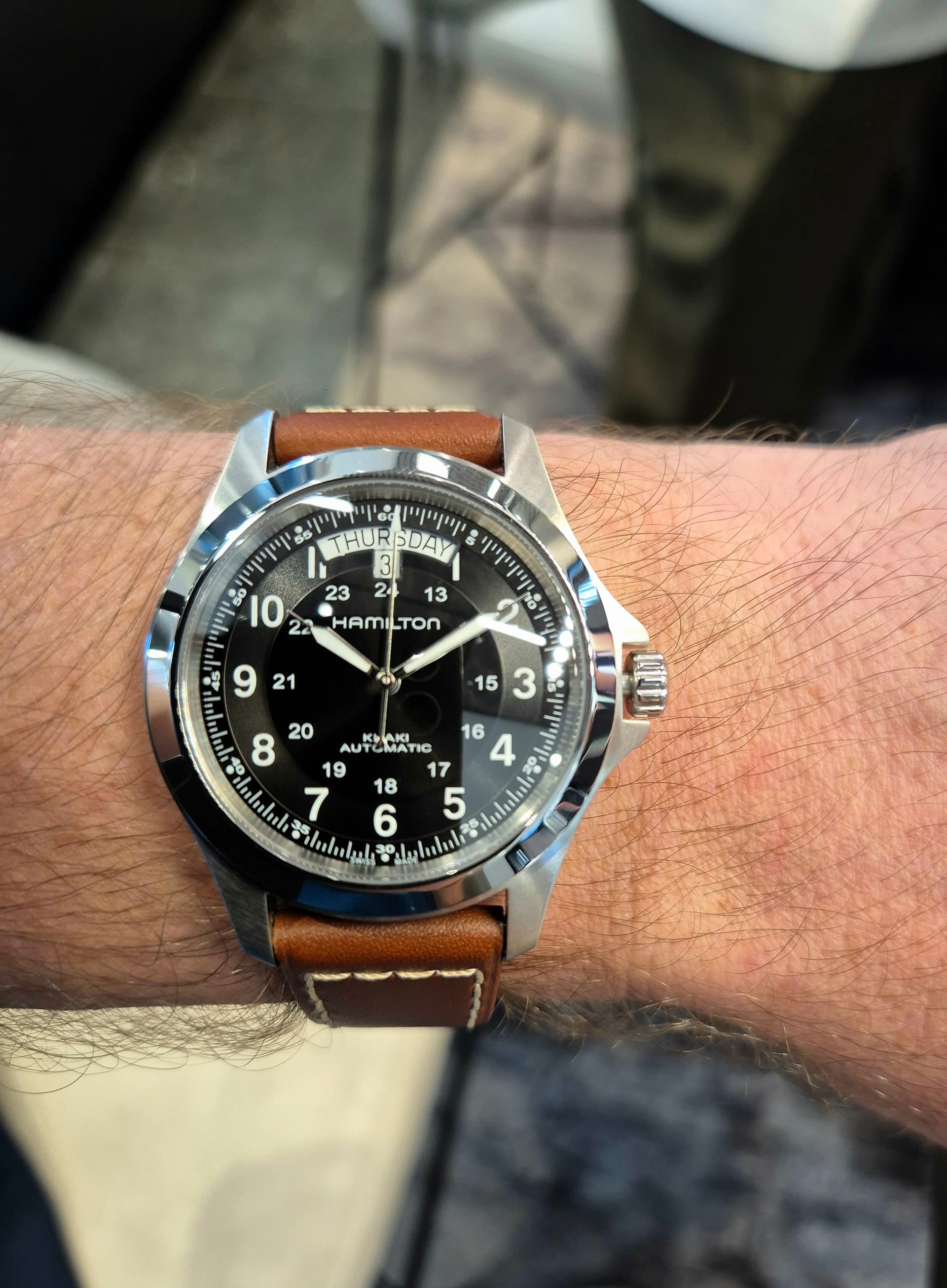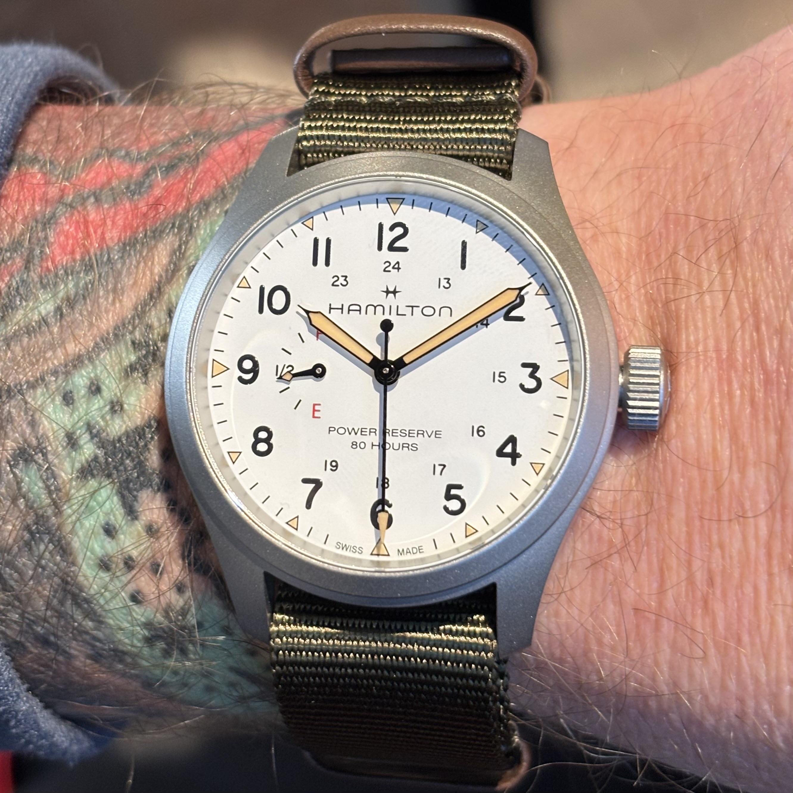 Ook even gebruik maakt om een Hamilton Khaki in 2 maten en uitvoeringen te testen. Goed om weten dat de grotere 42mm goed op de pols draagt.