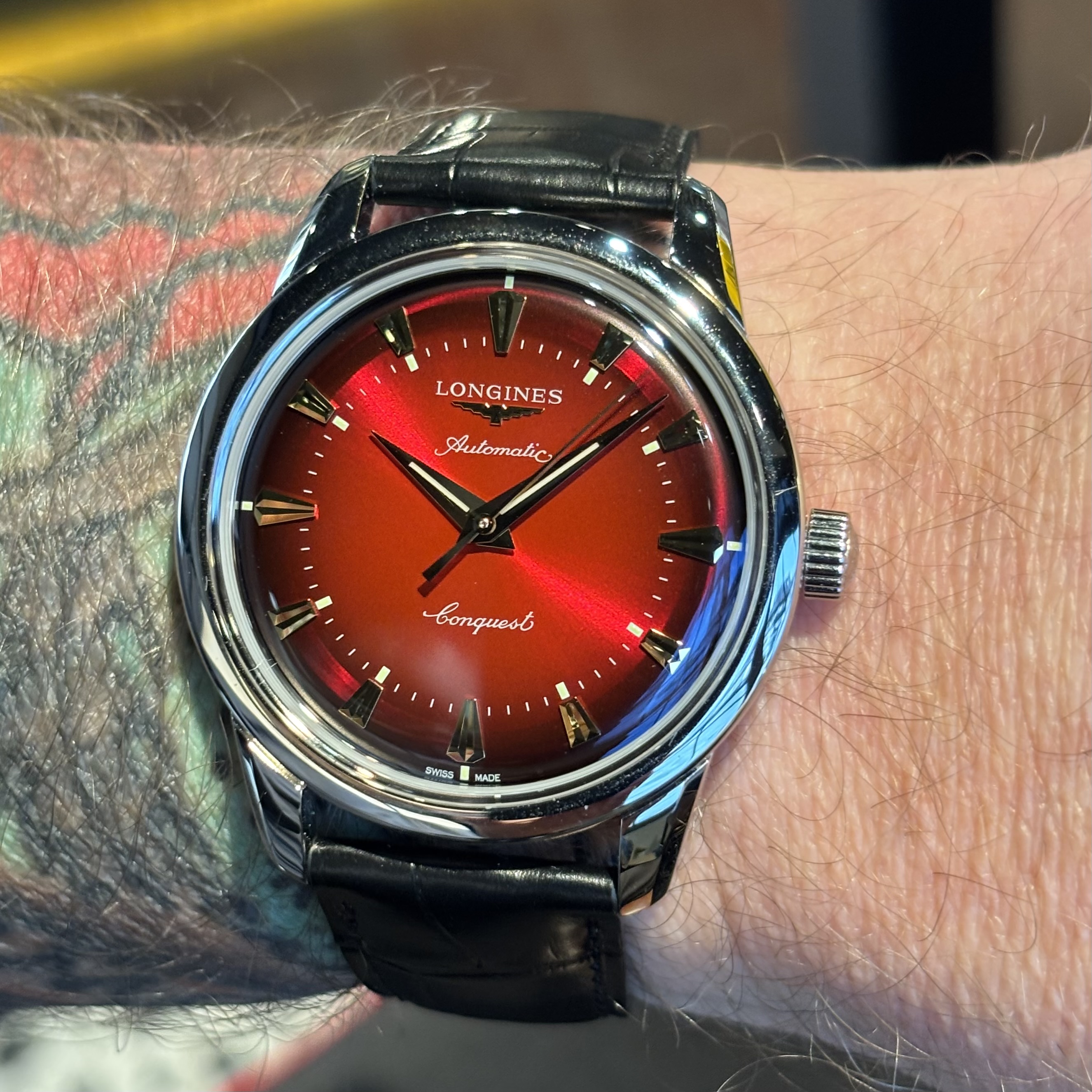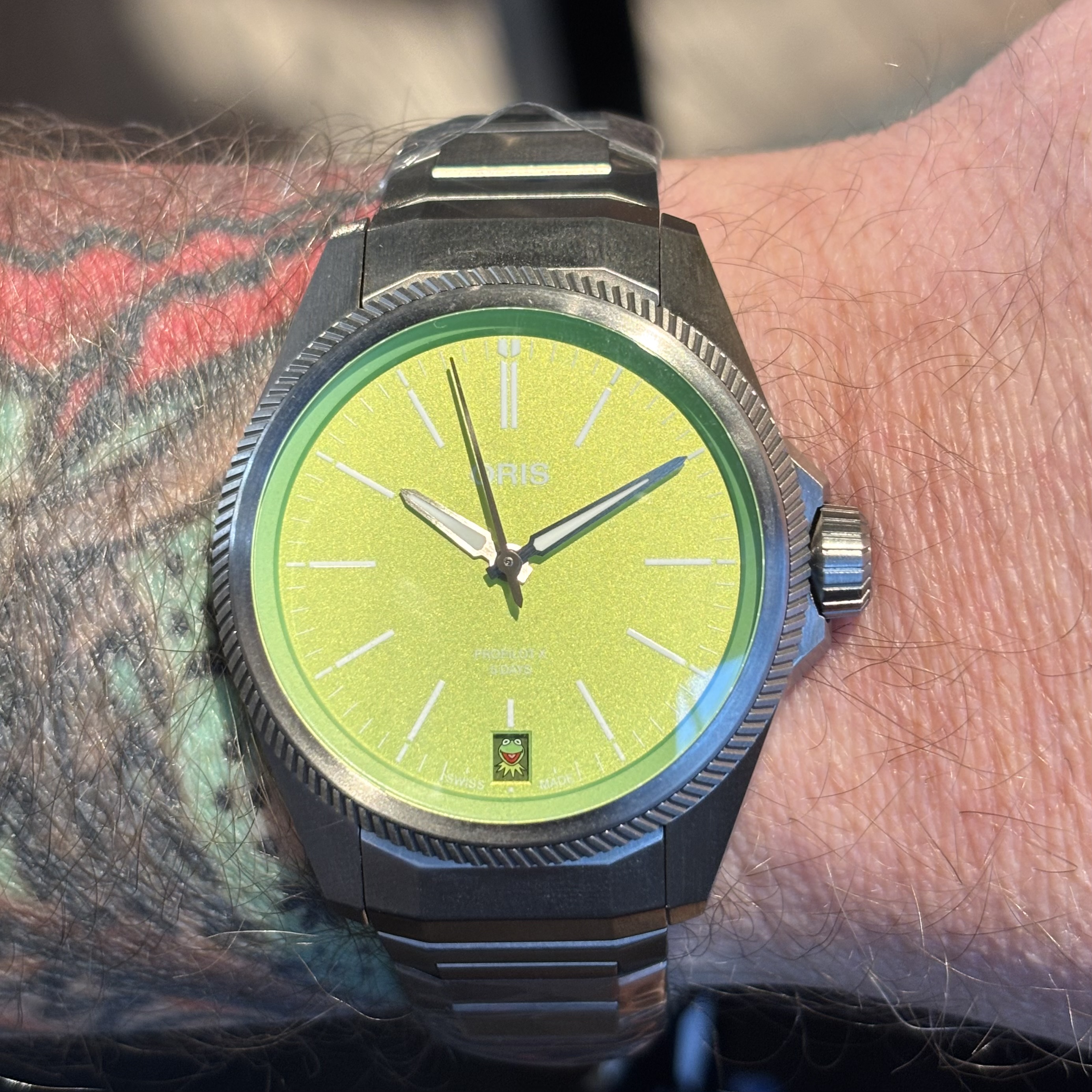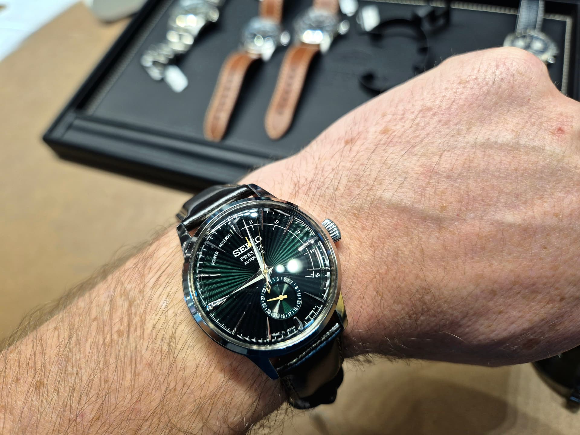 De presage in het lichtblauw hadden ze niet in deze uitvoering, maar deze groene wijzerplaat en gouden/gele wijzers heeft wel iets nobels.