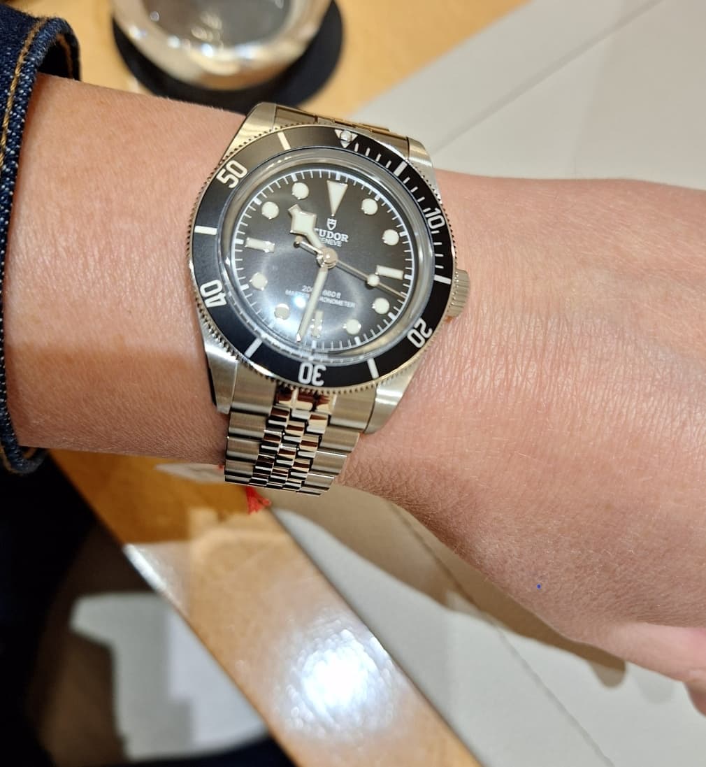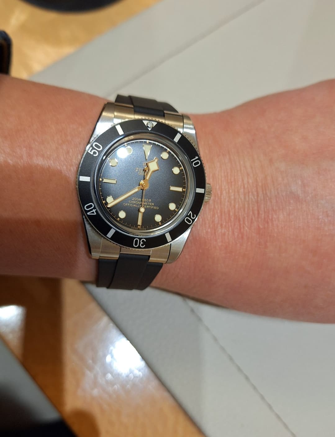 Gisteren wat gepast bij S&C. BB54 op rubberen band was heel mooi. De Monochrome vond ik ook mooi alleen beetje te dik voor mijn pols. Als ik nu al eentje kon halen zou ik voor de BB54 gaan. Ben wel benieuwd hoe ie draagt in vergelijking tot de BB58.