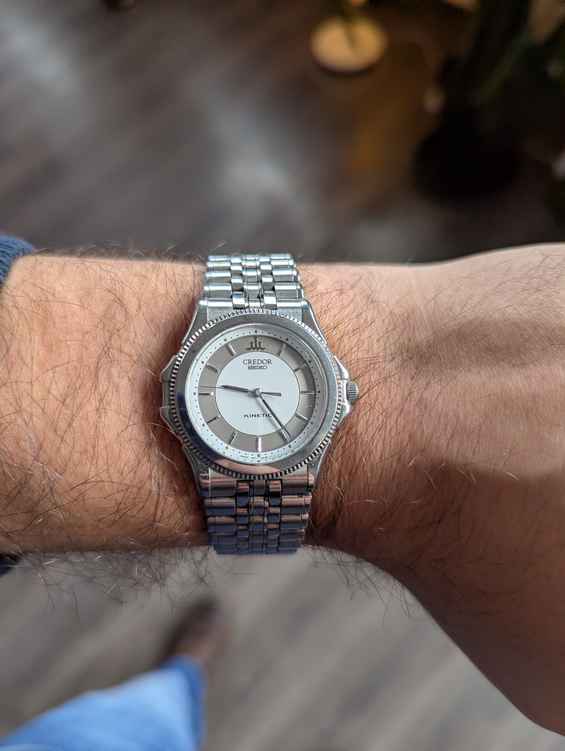 1908 op metalen band is prachtig. Draagt met de lichte dial wellicht een beetje groot.