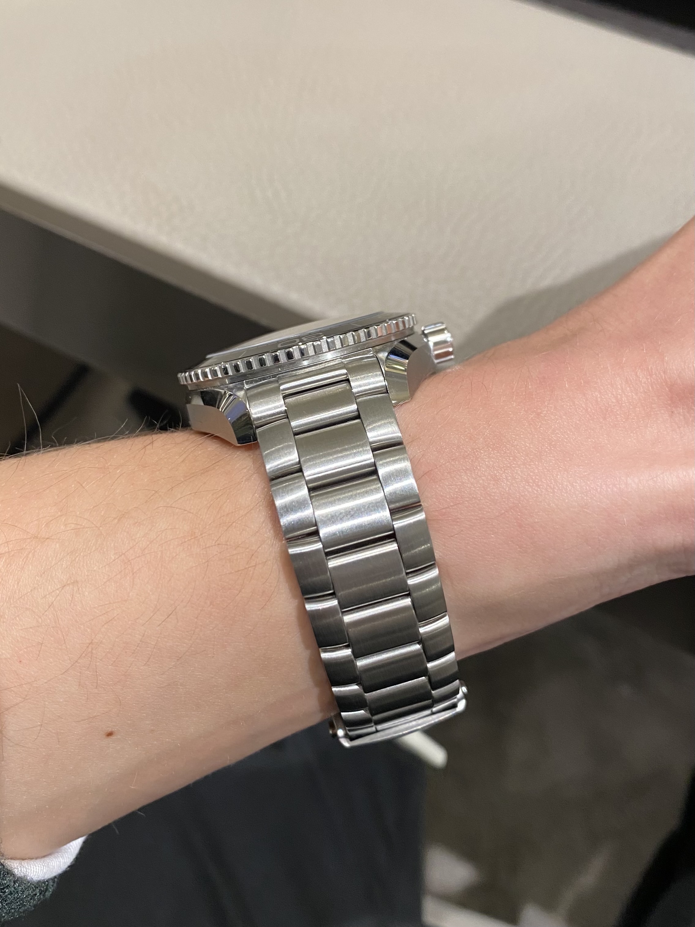 Vind hem trouwens op deze foto om een smal Aziatisch polsje toch ook best klein (vooral de korte lug to lug, en smalle band) ogen: