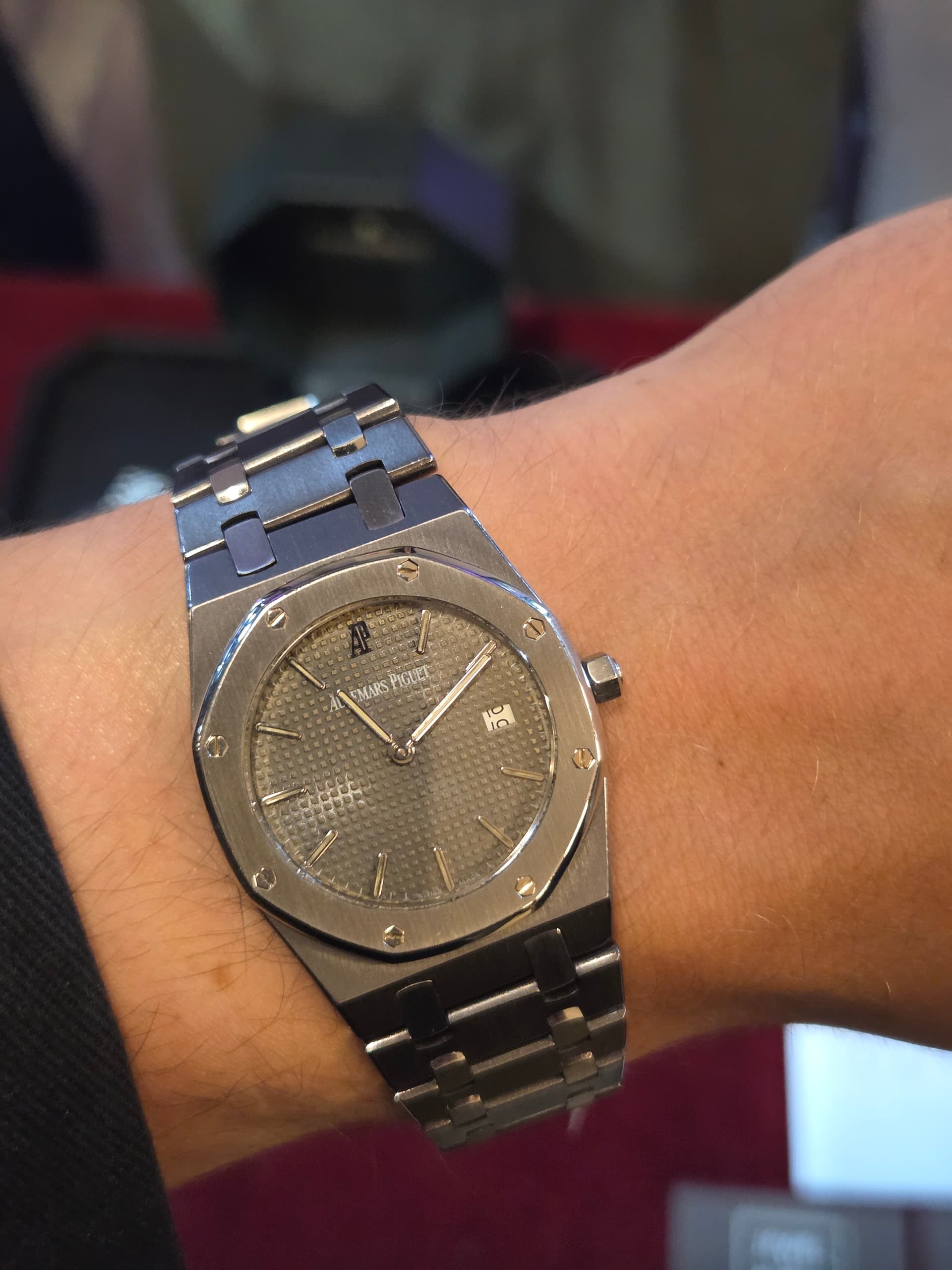 Deze Royal Oak 56175TT in Taltanum (wat dat ook mag zijn?) Iets te klein voor mijn pols denk ik.
