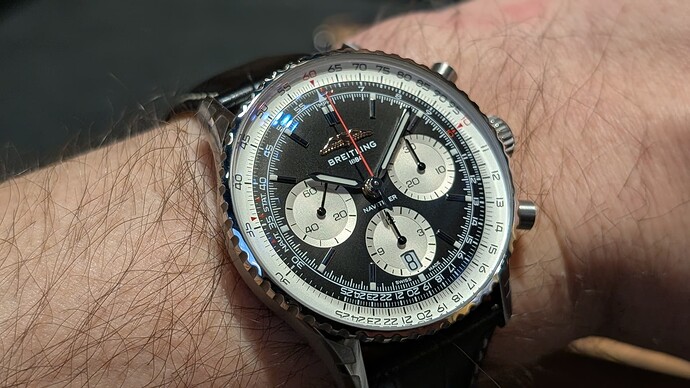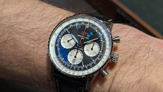 Super vriendelijke mensen in de Breitling boetiek in Brussel. Navitimer is zoals verwacht wel groot, maar niet zo clownesque als ik had gedacht. En de 38mm retro dingetjes zijn heerlijk. ![]()