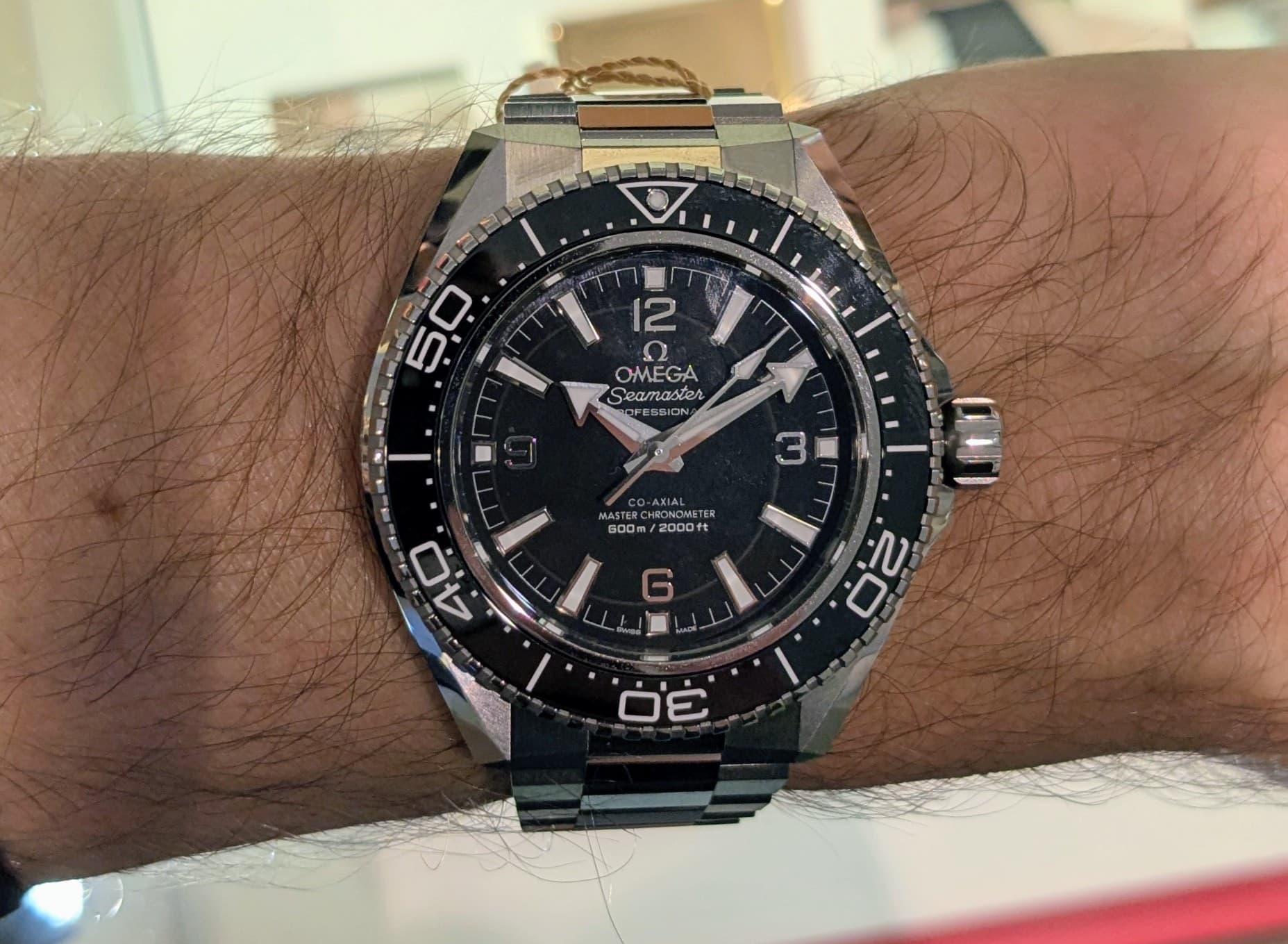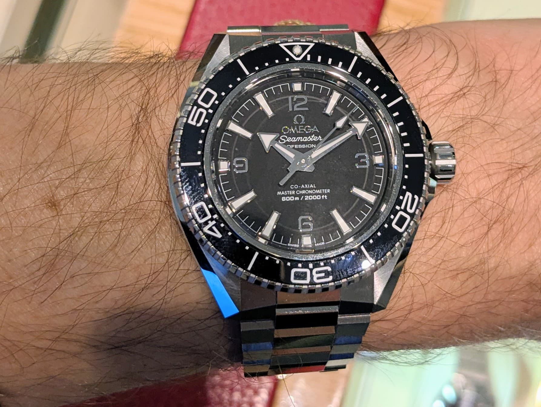 Ook de nieuwe Planet Ocean gepast. Voor een 42mm opvallend draagbaar op m’n 16,5mm pols. Echter, de kast is mij teveel bling en die band, en vooral die sluiting, vond ik echt een afknapper. Deze kan van de lijst. Dat is soms ook weleens een geruststelling.