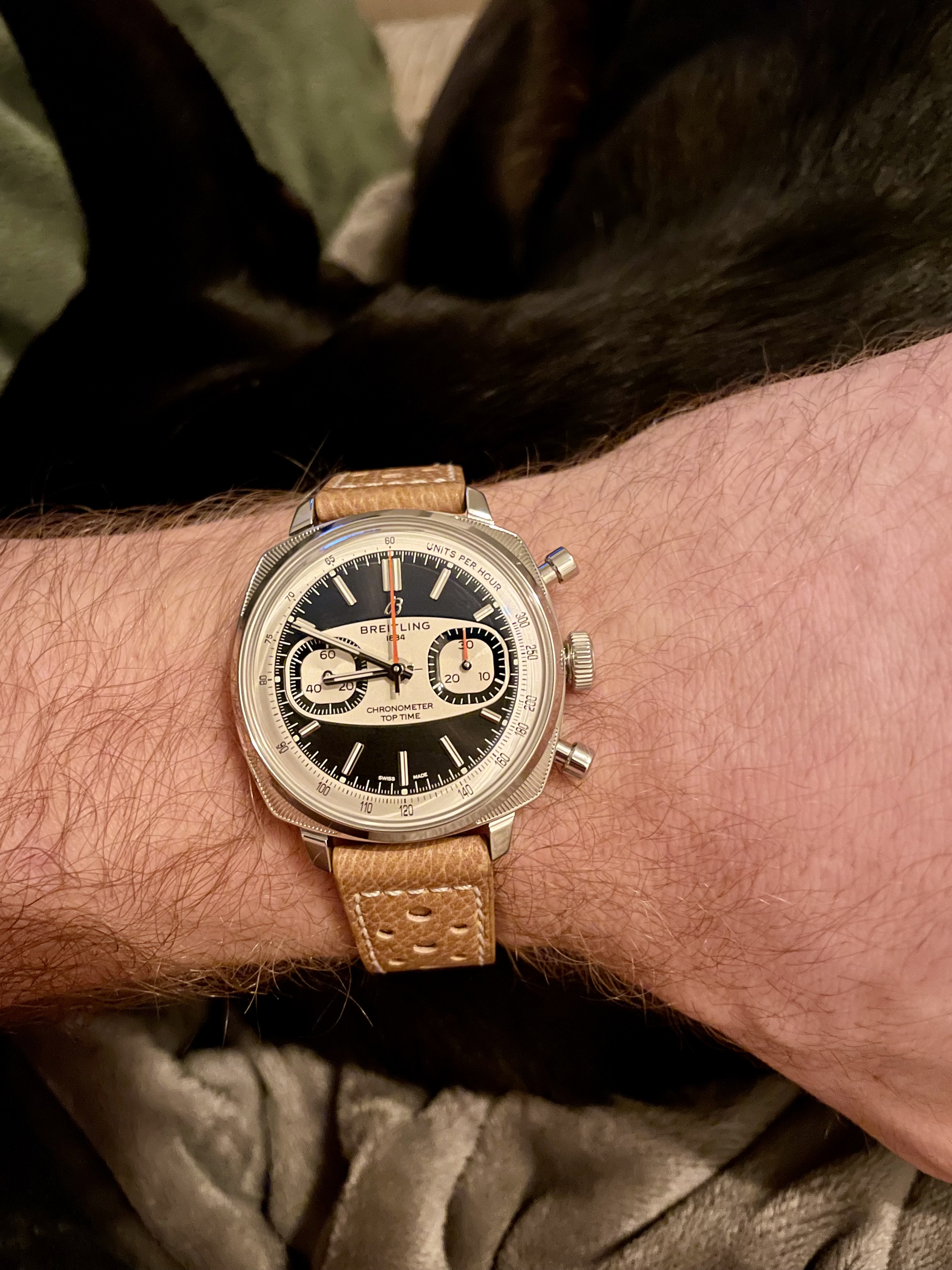 Op papier lijkt hij vrij groot. Maar in praktijk (b)lijkt hij goed draagbaar, op mijn pols van 17,5cm, door de korte lugs. Vond het, al met al, een lekker stoer horloge!