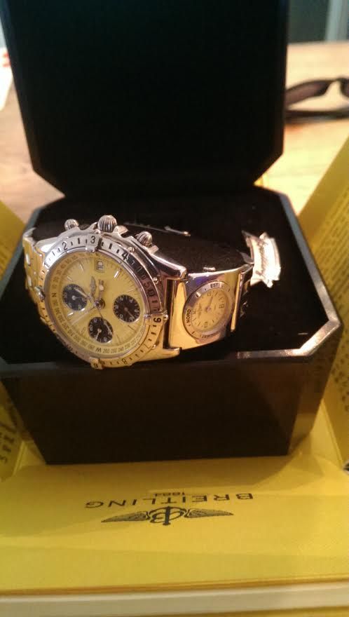 Ik heb hier een mooi breitling horloge type chronomat longitude met stalen band en upc (zie foto) ik vroeg me nou af wat een mooi bedrag zou zijn als ik deze zou verkopen of wat is hij waard? ten eerste alles zit erbij documenten boekjes ook de doos en zelfs het kartonnen doosje van breitling waar de doos inzit zegmaar. de fotoos zijn van google maar het is exact dezelfde alleen hij heeft een gele utc. hij is bijna ongedragen en echt in super staat.