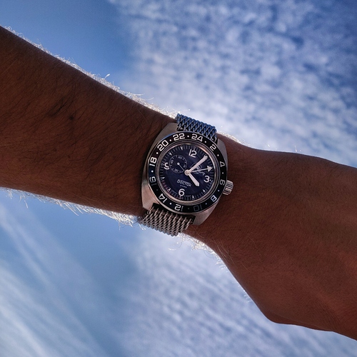 Invicta Pro Diver. De mijne mist zijn cyclop en zijn bezel. Maar als ik ga zeilen, dan wind ik hem even op en ik ben iedere keer weer verbaasd over hoe dit goedkope horloge aanvoelt, opstart en loopt. Miyota uurwerkje. Geen hacking, maar wel handmatig op te winden. Een stalen band die goed op lengte te maken is. En een kast en band die afgezien van INVICTA op de zijkant prima zijn afgewerkt. Oh ja, ik heb de polished center links wel gematteerd.