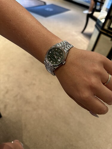 Lastig puntje vind ik ook het materiaal. @Nol draagt verder goudkleurige sieraden op de foto, wat mij betreft misstaat een stalen horloge dan een beetje. Een echt gouden horloge is dan weer flink geld neerleggen, dus kijk je misschien eerder naar iets met een coating, misschien bi-color om het netjes te houden. Maar da’s dan weer een beetje cheap, vergeleken met de real deal… en zo blijf ik rondcirkelen…