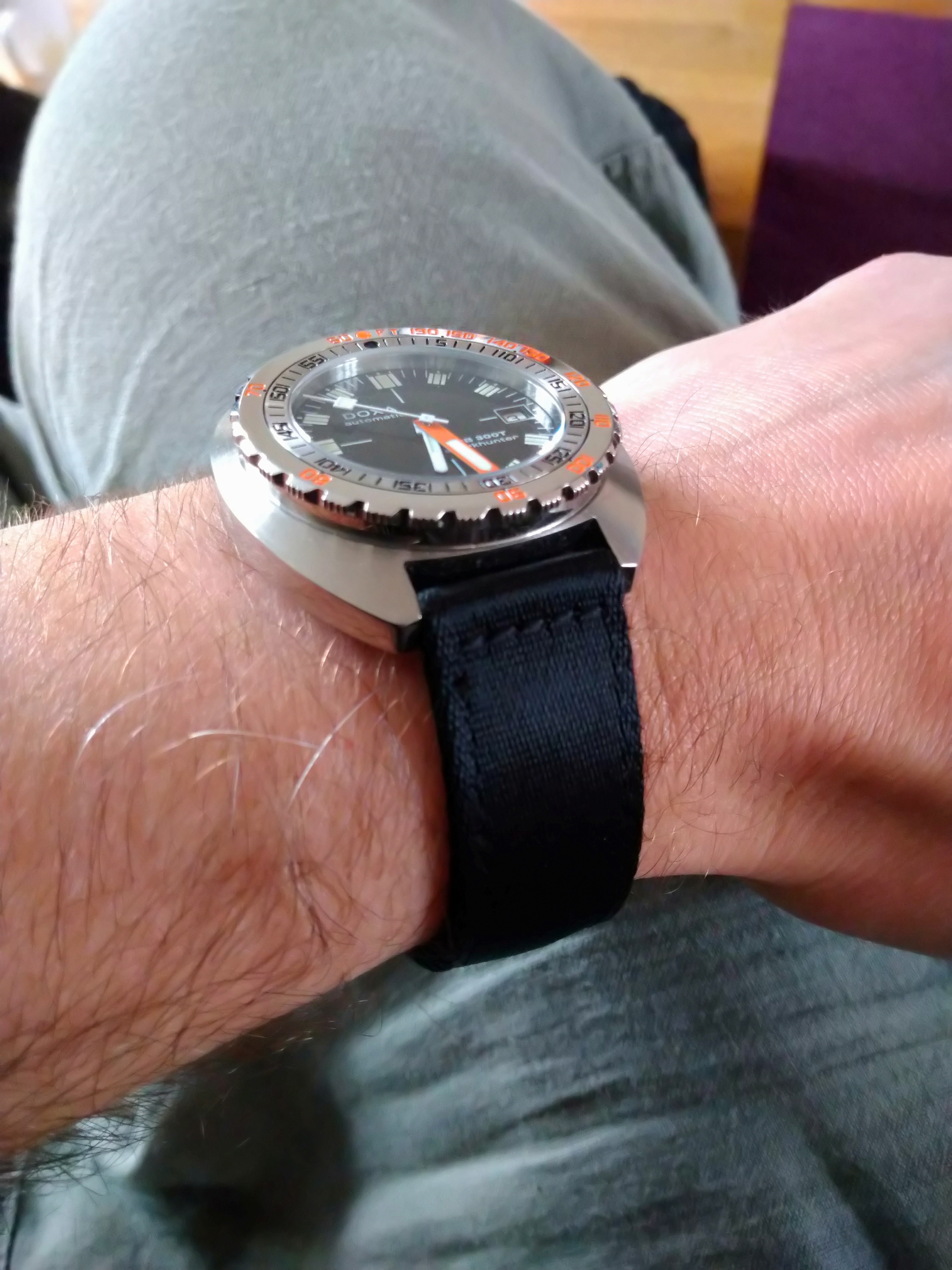 Mijn Alpina Startimer GMT, zit heerlijk (redelijk dun en gebogen lugs), mooie grab ‘n go en ik blijf m ook pakken uit mijn kist.