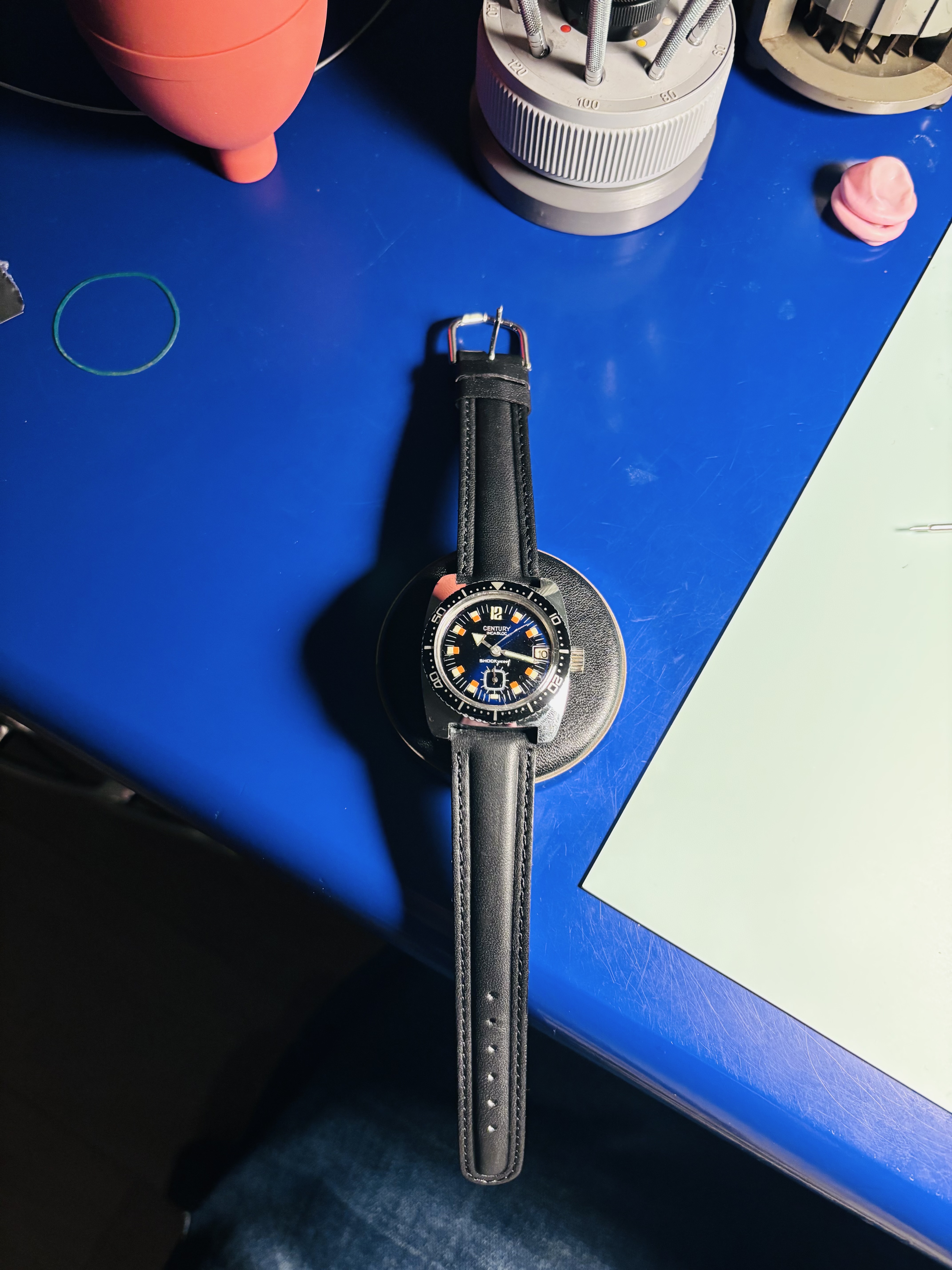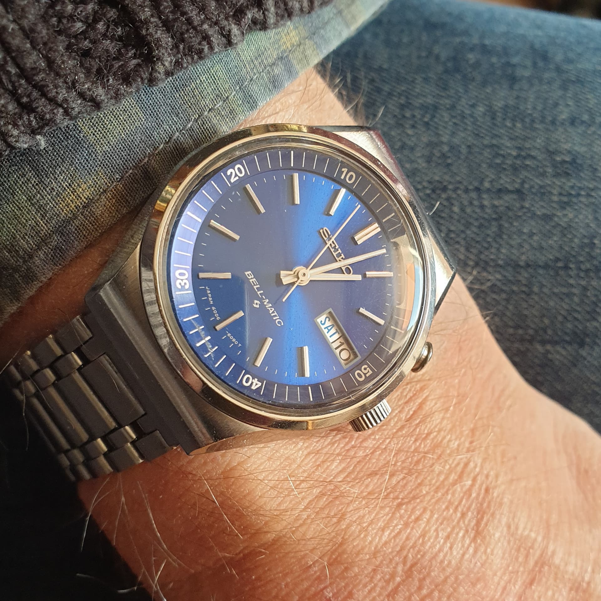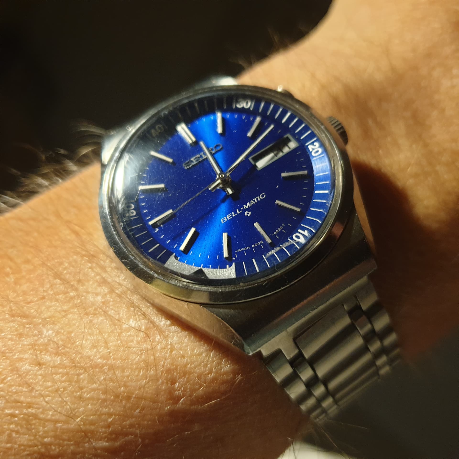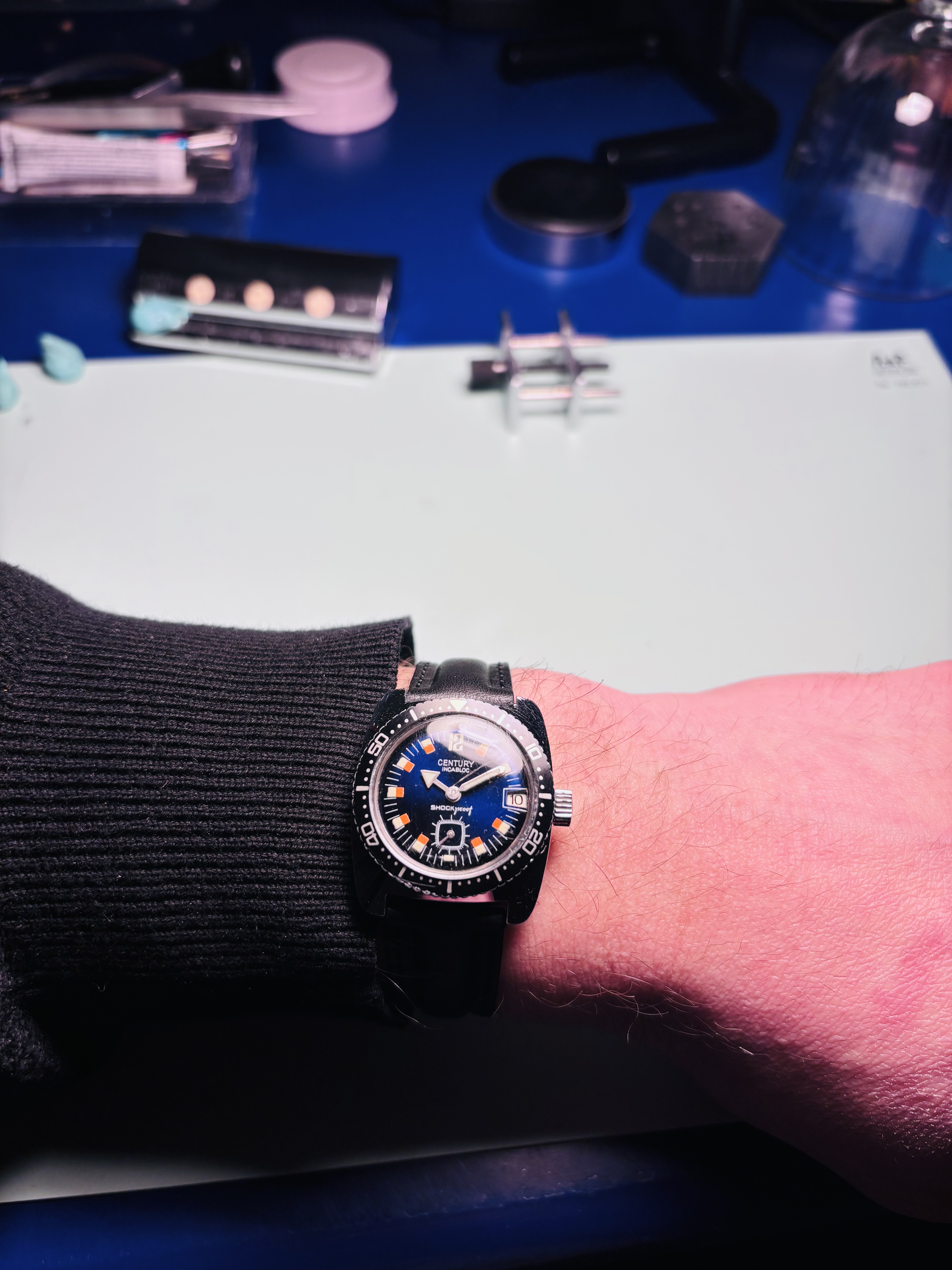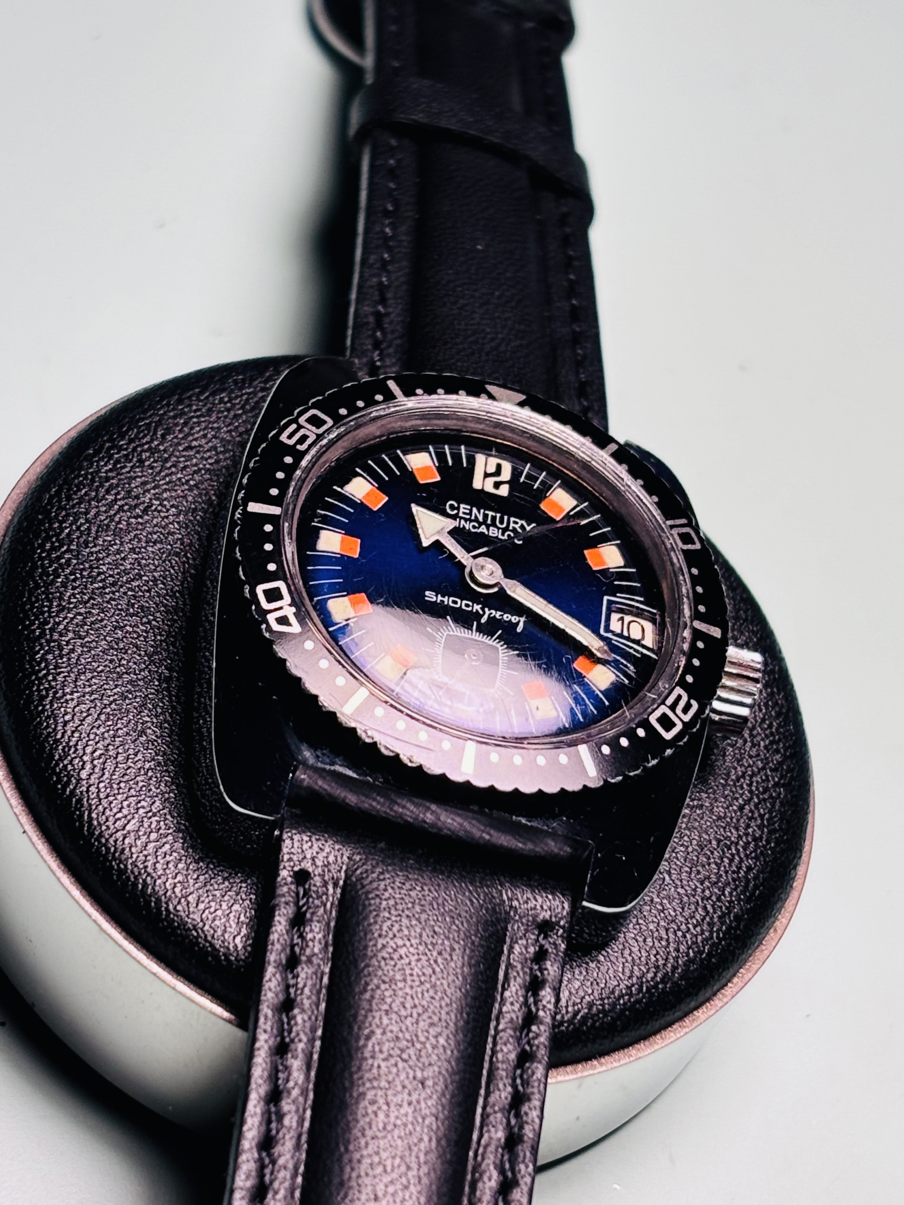 Dank , ik moet zeggen het is inderdaad bijzonder, komt denk ik door vocht, want er zat ook wat roest onder de lunette, maar de looks zijn nog steeds geweldig. Ben er blij mee, en heb hem nu zelfs om, om op tijd wakker te worden morgen.