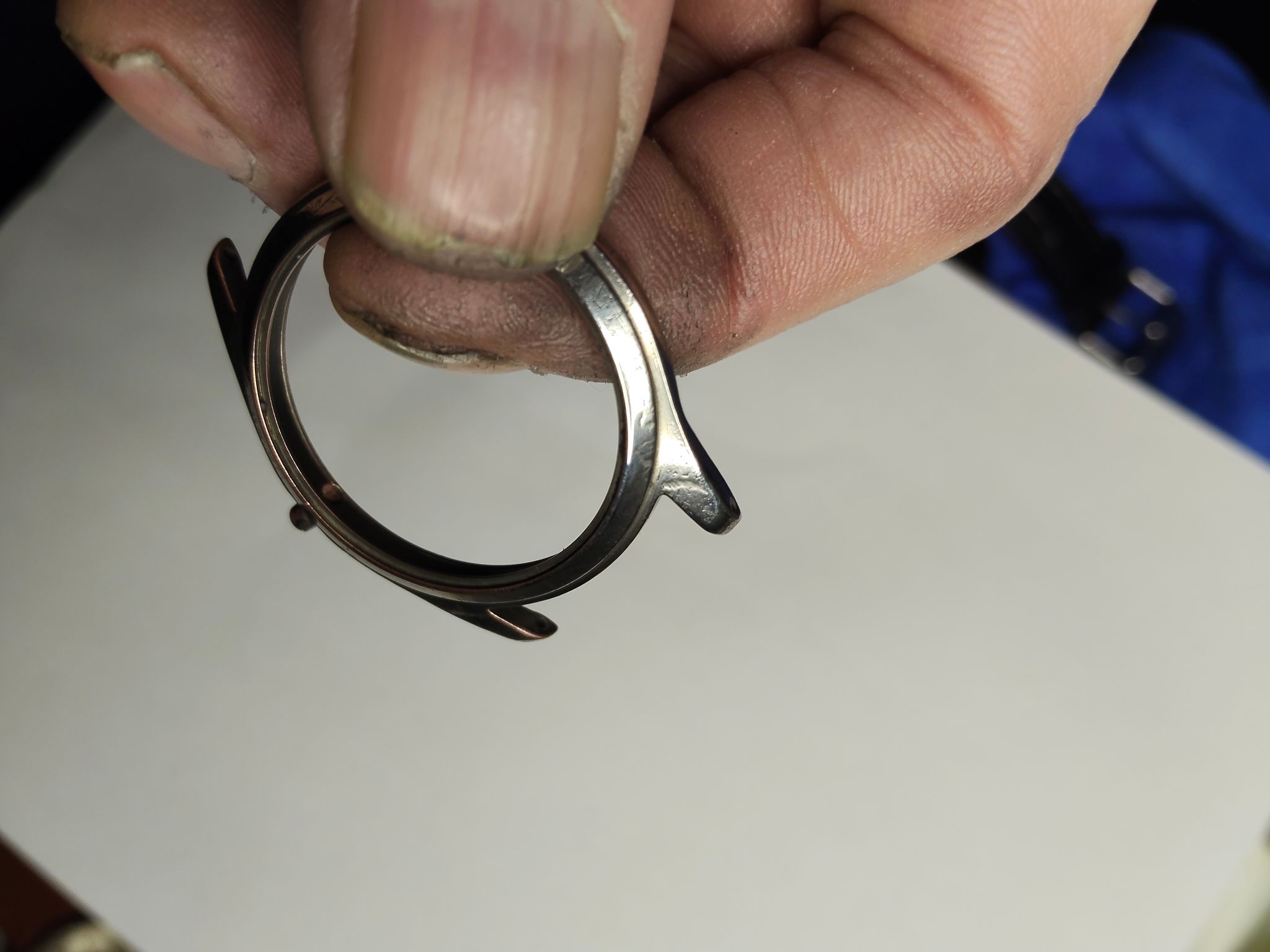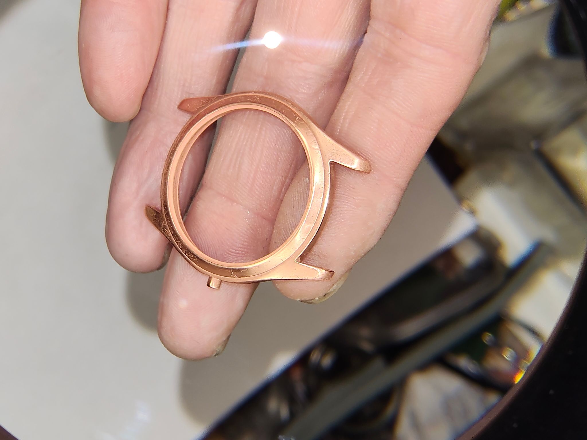 Er zit een flinke kras op de lugs bovenaan de linkerkant, Om dat op te vullen, kun je diverse lagen koper aanbrengen.