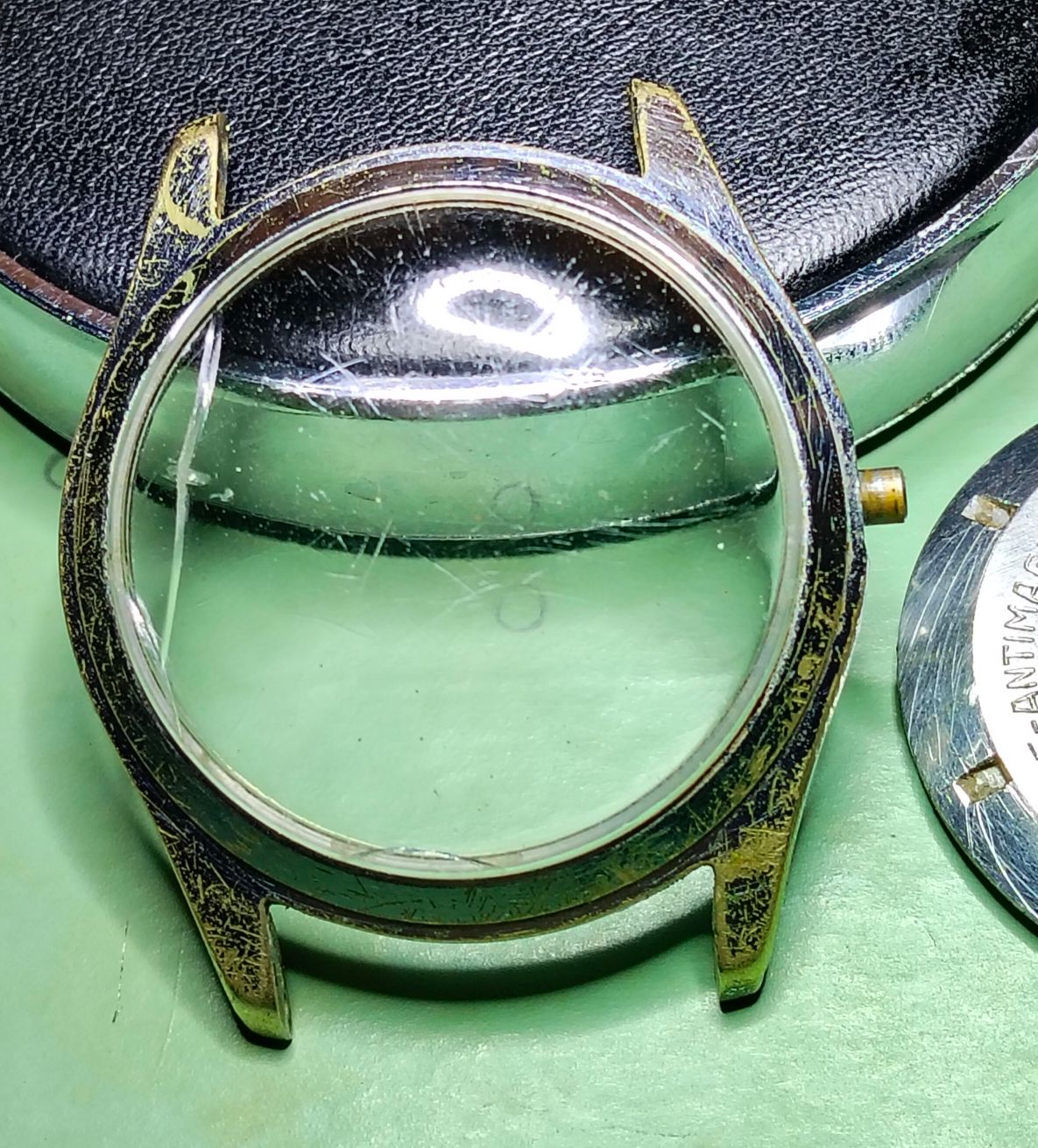 Vertinnen is een mooie, makkelijke metaalbewerkingstechniek. Zelfs ik kan dat. Ik weet alleen niet of het ook bij horloges werkt, maar dat lijkt me wel. Ik doel op: laagje soldeertin verhit aan oppervlakte toevoegen en dan gladstrijken plus vijlen. Niet vertinnen als in galvaniseren. Zoals Lugs soms gerepareerd worden, maar dan minder grof aanbrengen.