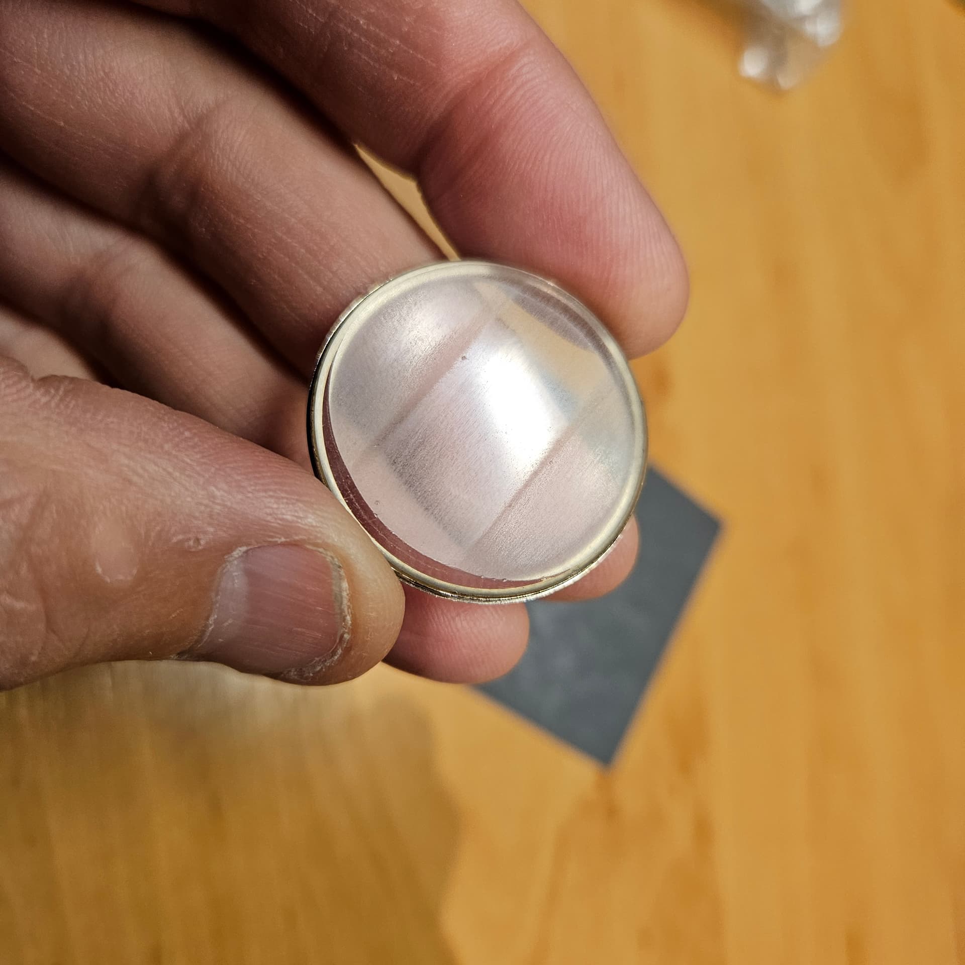 Ik ben begonnen aan deze klus, polijsten van het facetglas. Beginnend met korrel 240, dan 400, 800, 1200, 1500, 3000.