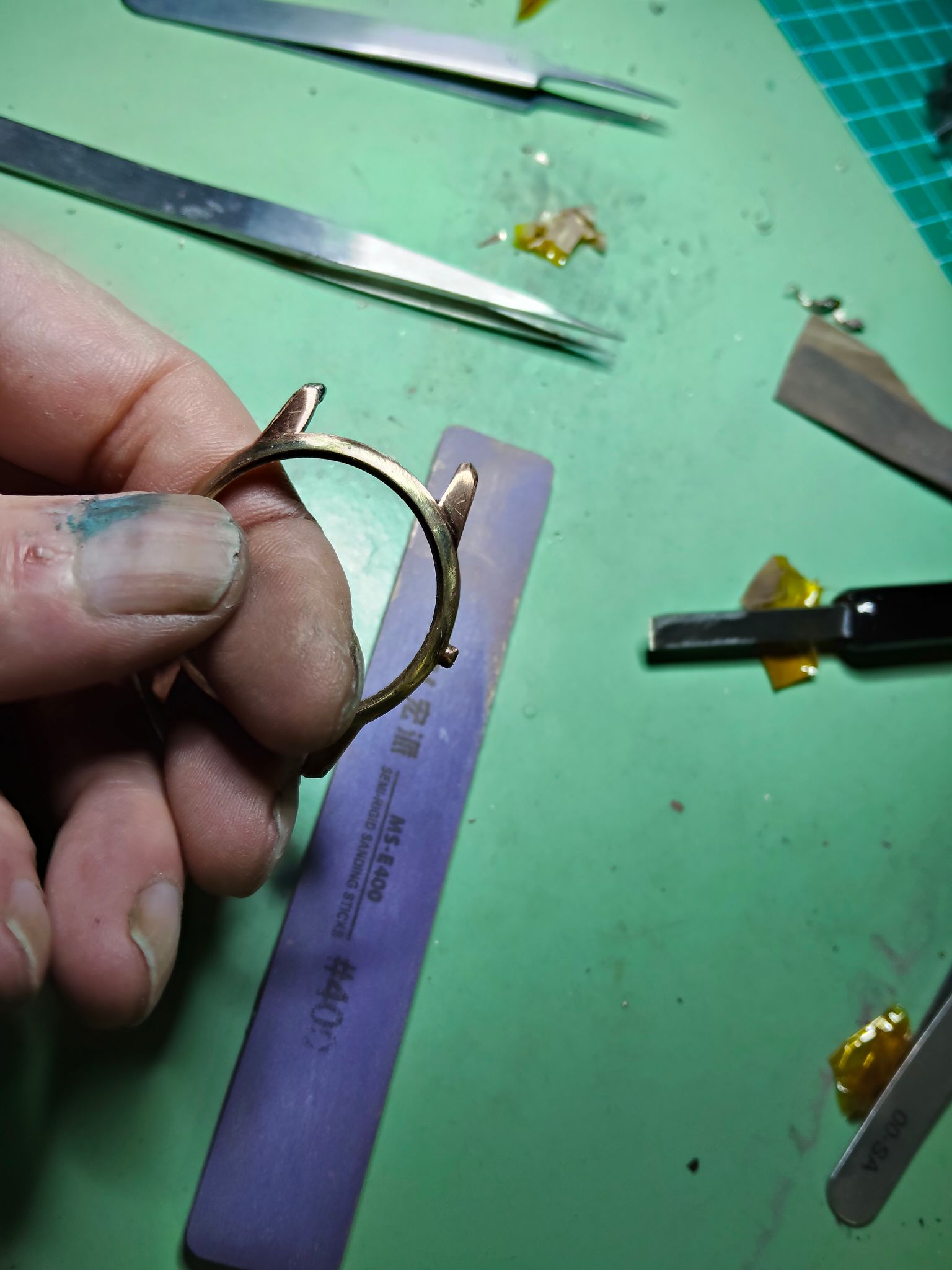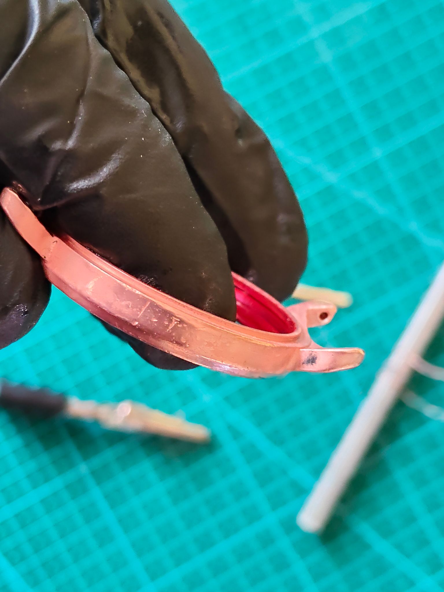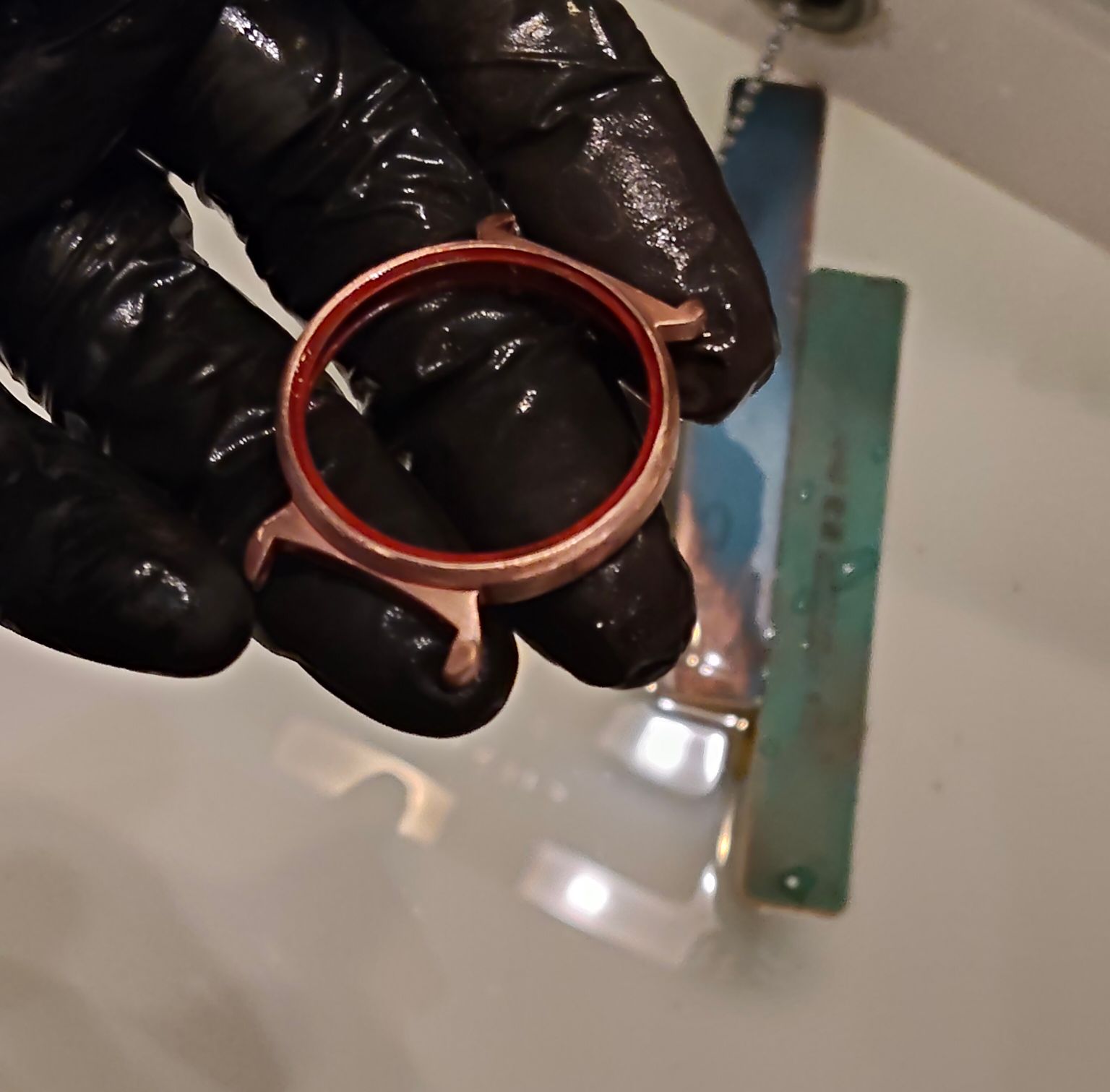 Over de lugs was ik wel tevreden, maar iets klopte er niet, ik zag dat er te veel koper op de ring rond het glas zat.