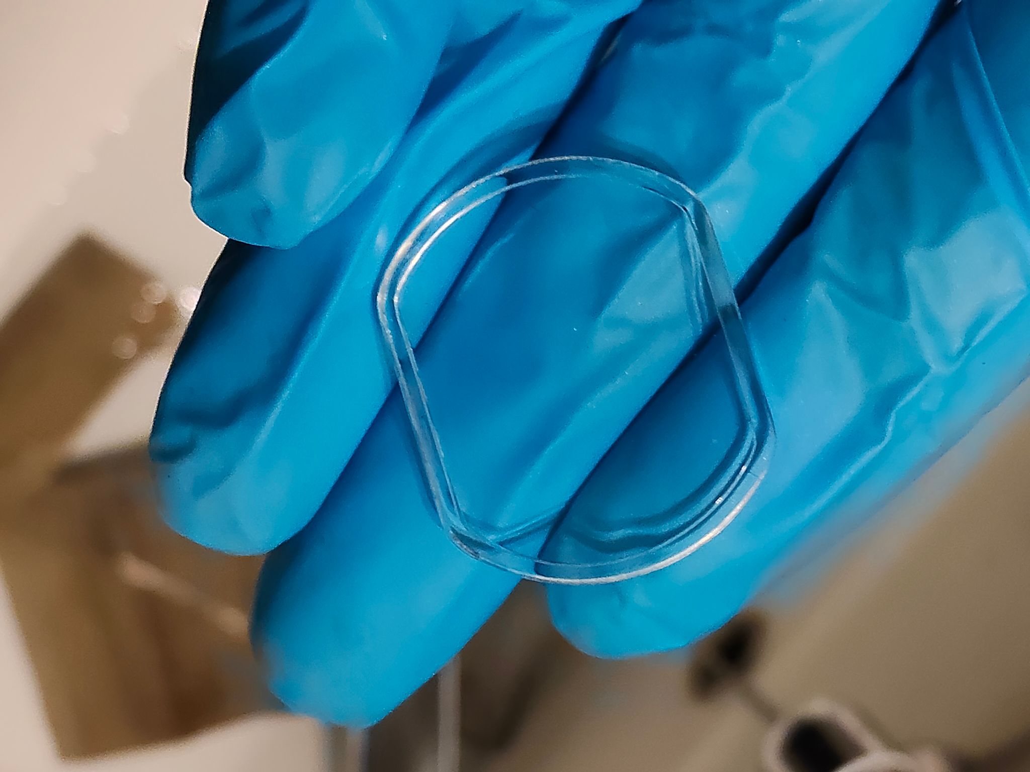 Na een halfuur of zo heb ik de blauwe handschoenen vervangen door de witte vingercondooms. Die zitten flink strak en daardoor meer controle over de veer.