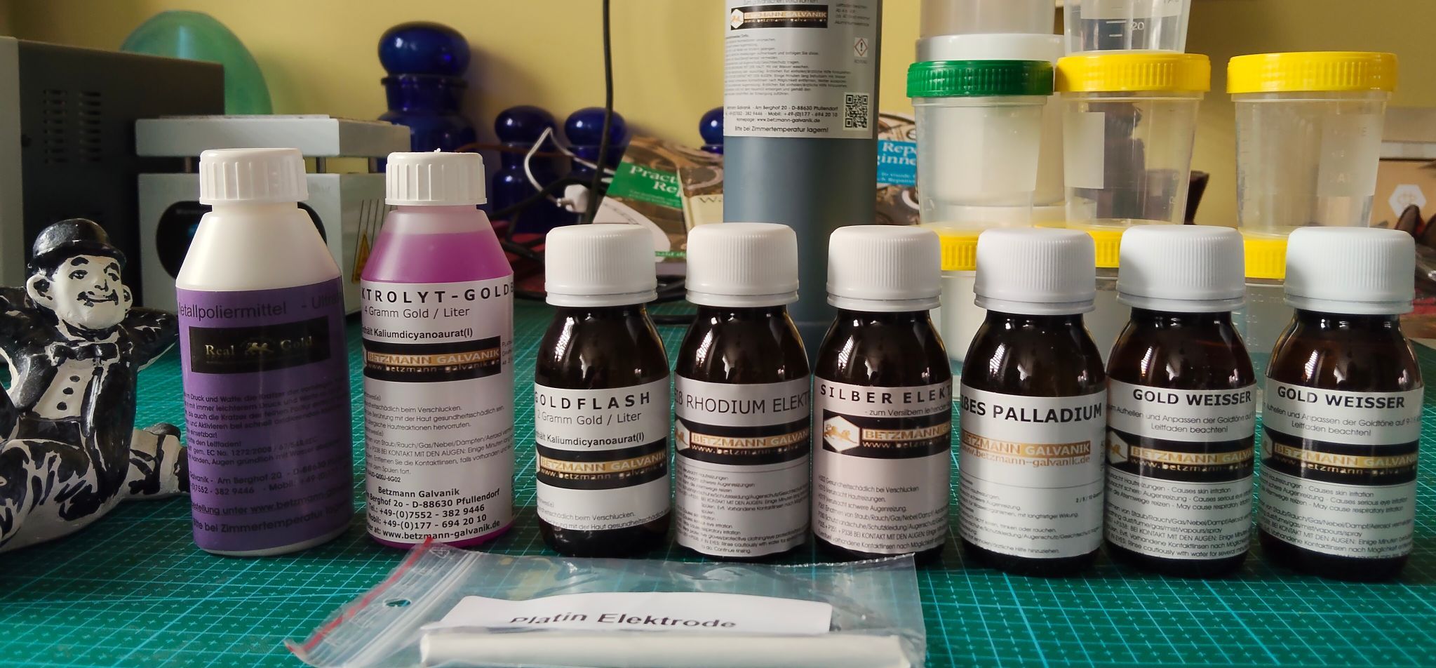 Ik heb vanmiddag ook de vloeistoffen (electrolyten) binnengekregen uit Duitsland. Ik kijk ernaar uit om daarmee te beginnen en dat onder de knie te krijgen. Lijkt me erg leuk om te doen, dat vergulden.