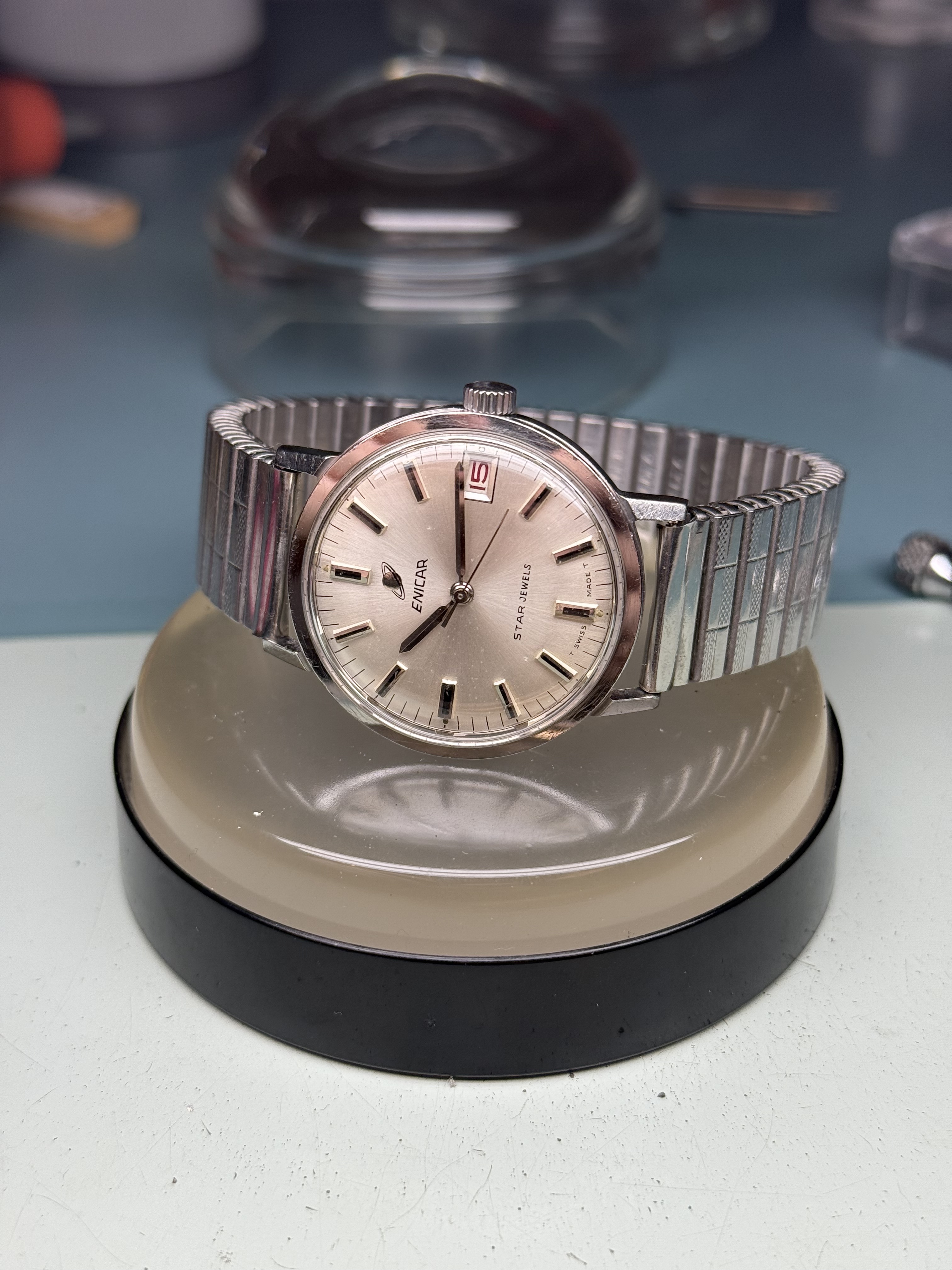 Deze kan wel wat aandacht gebruiken. Een simpel enicar horloge wat wat mij betreft wel opnieuw wat leven in gestopt mag worden ![]()