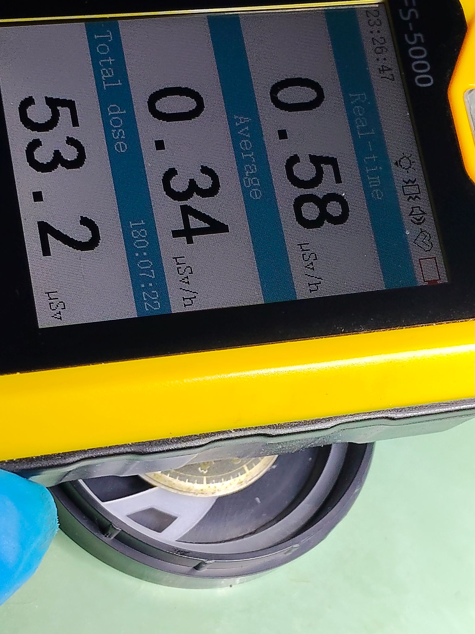 Had je toevallig de geigerteller ertegenaan gehouden? Ik ben wel benieuwd of die wat aangaf. Los van zelf meten probeer ik een beetje in te schatten wat je op basis van stijl / periode in kunt schatten qua stralingswaarde.