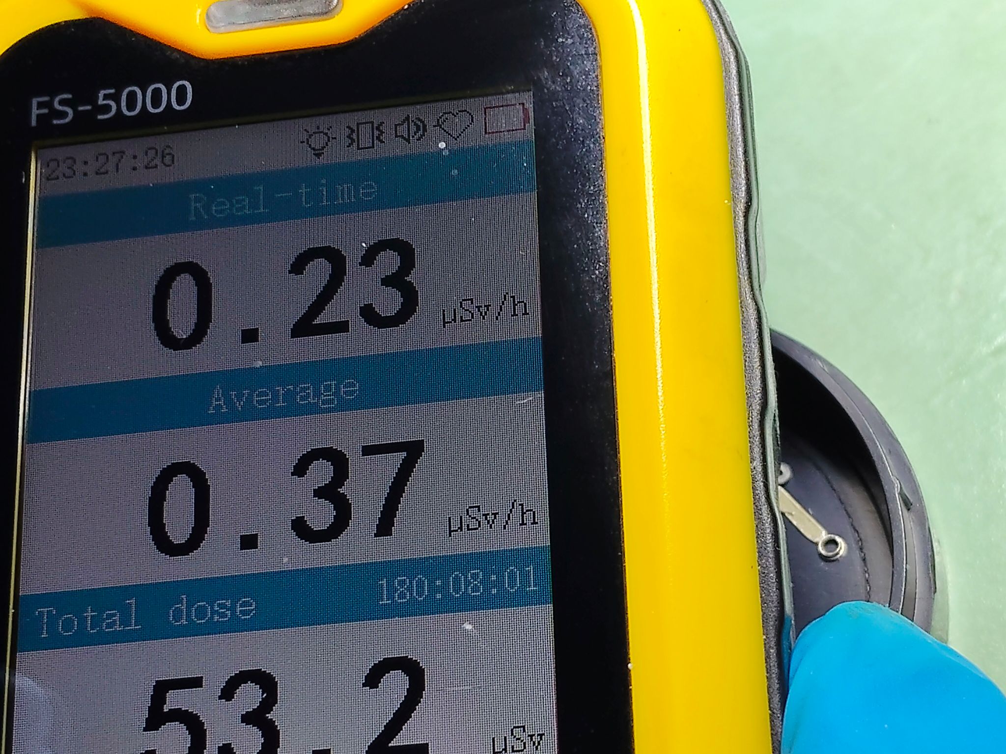 Schattingen zijn niet te maken. Ik heb een horloge gehad met 65 zeer hoge straling. Daar heb ik de radiumverf van verwijderd. Dat doe je het veiligst onder water. Je legt de plaat in een bakje met lauw water en het gaat er heel makkelijk af, of je legt het niet in een bakje water, maar maakt de verf nat met een paar druppels water, Hierdoor wordt de radiumverf erg snel zacht, waardoor je het er makkelijk met een klein kwastje eraf kunt halen.