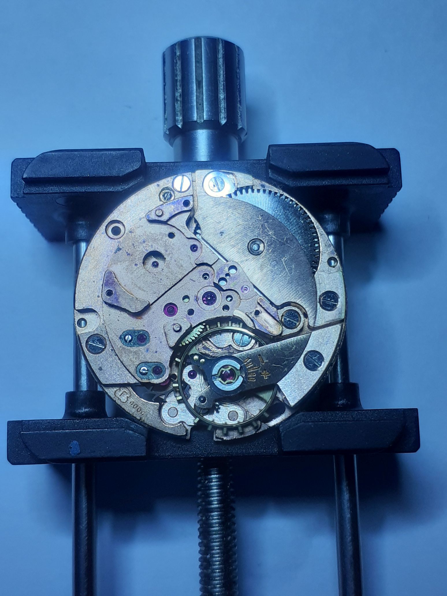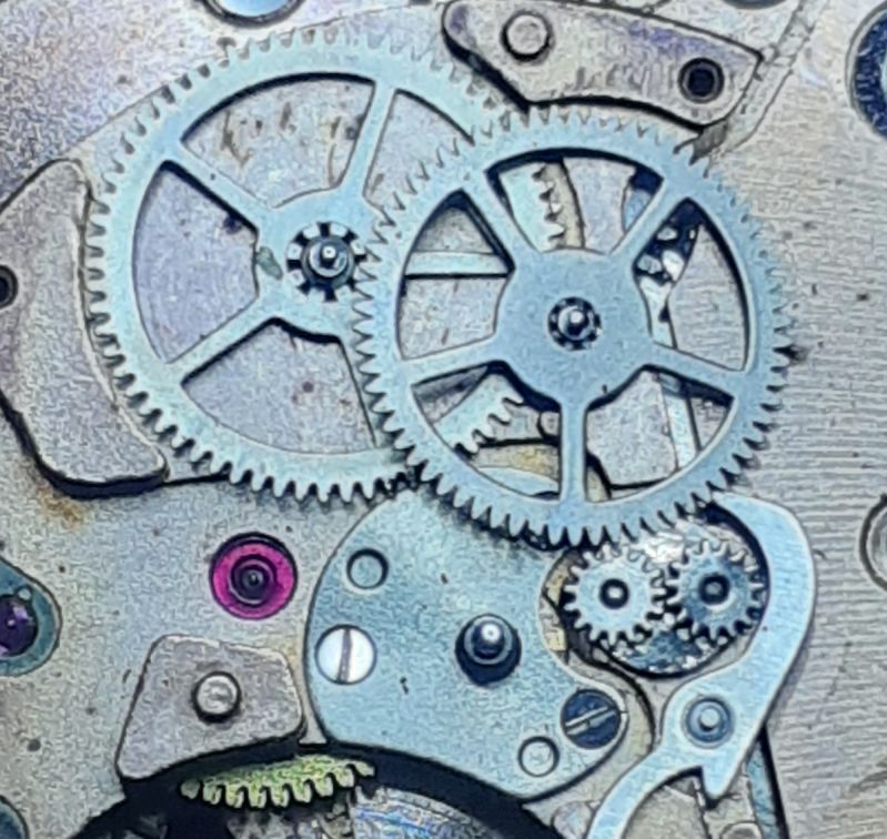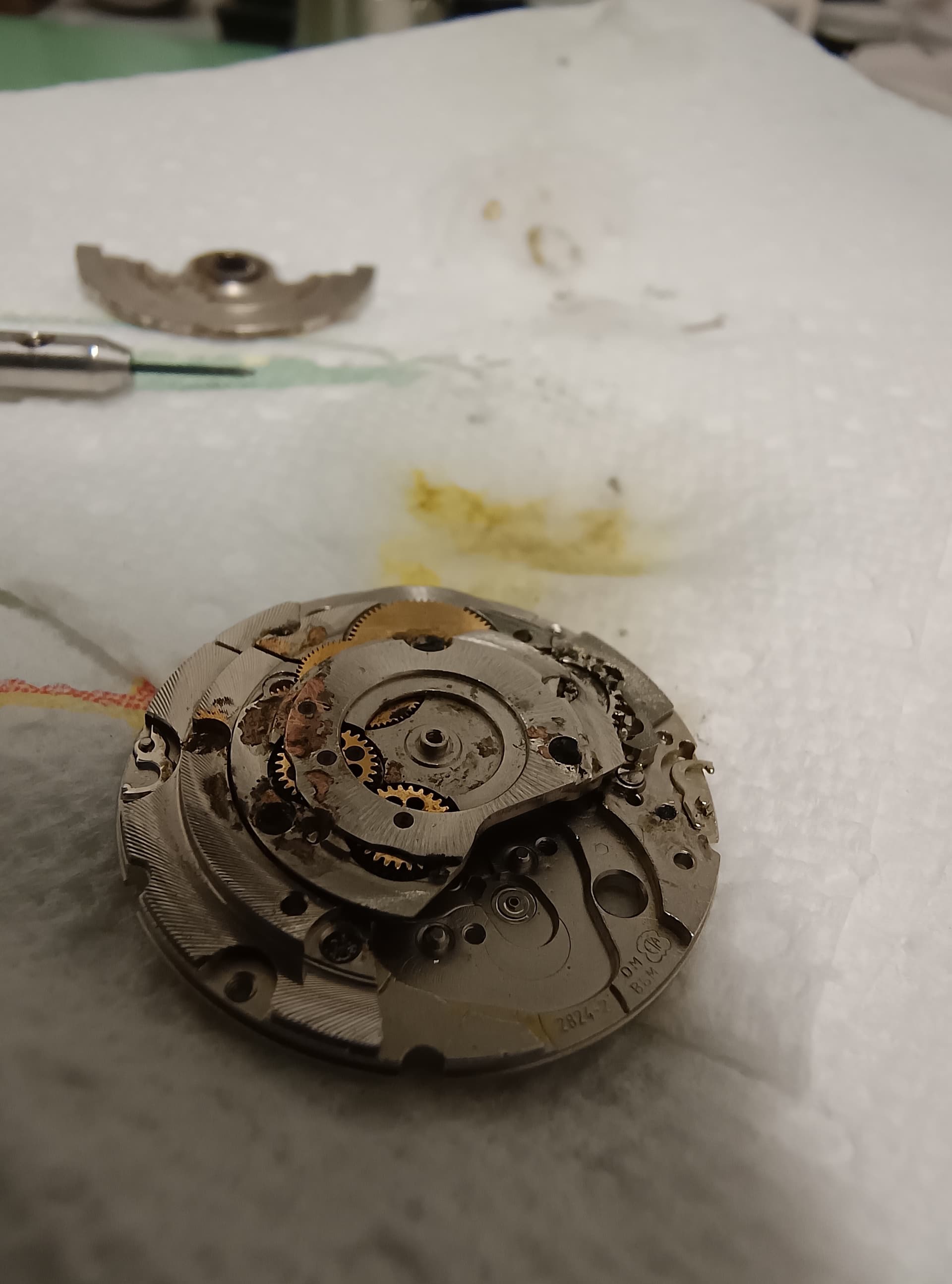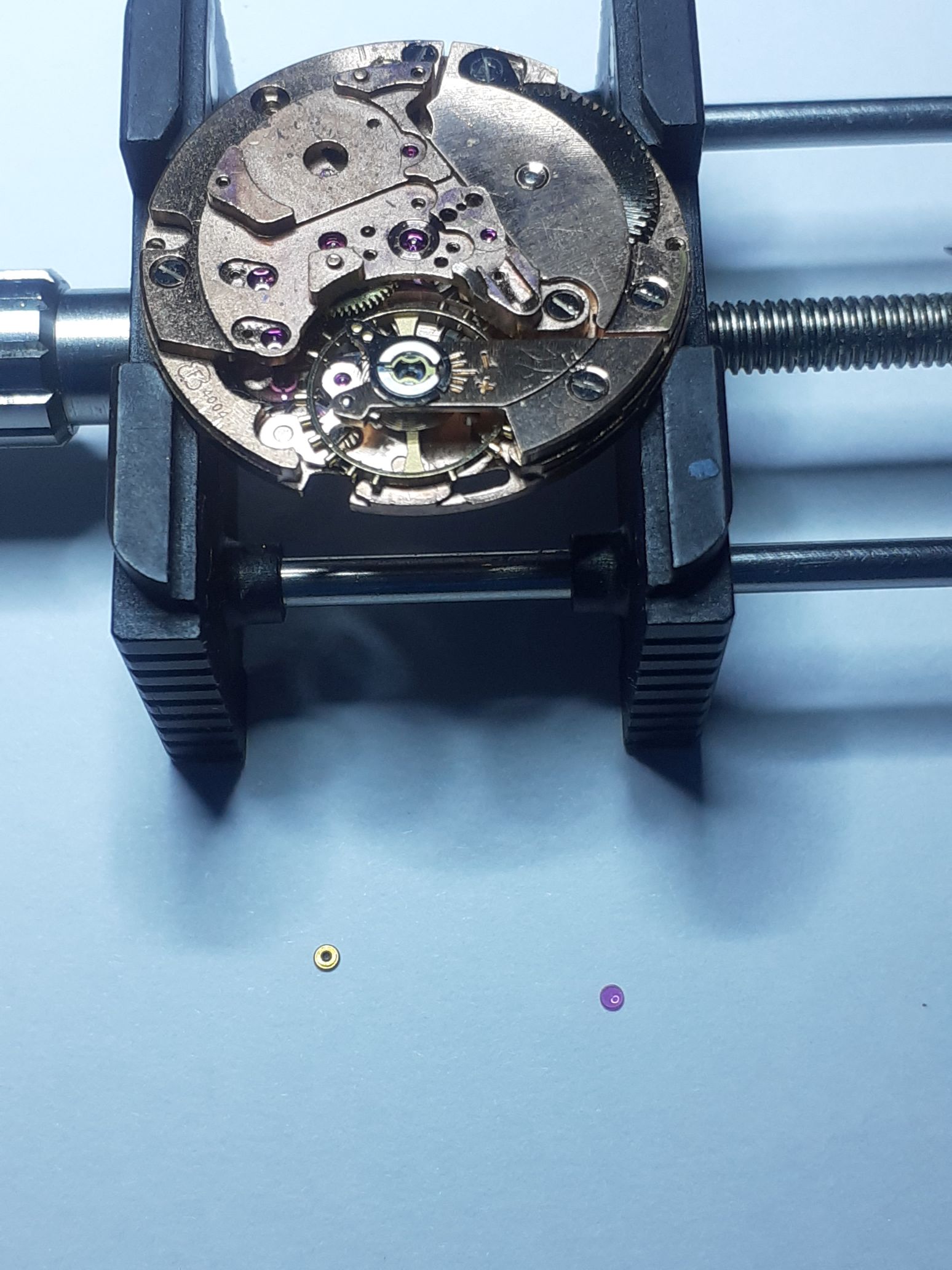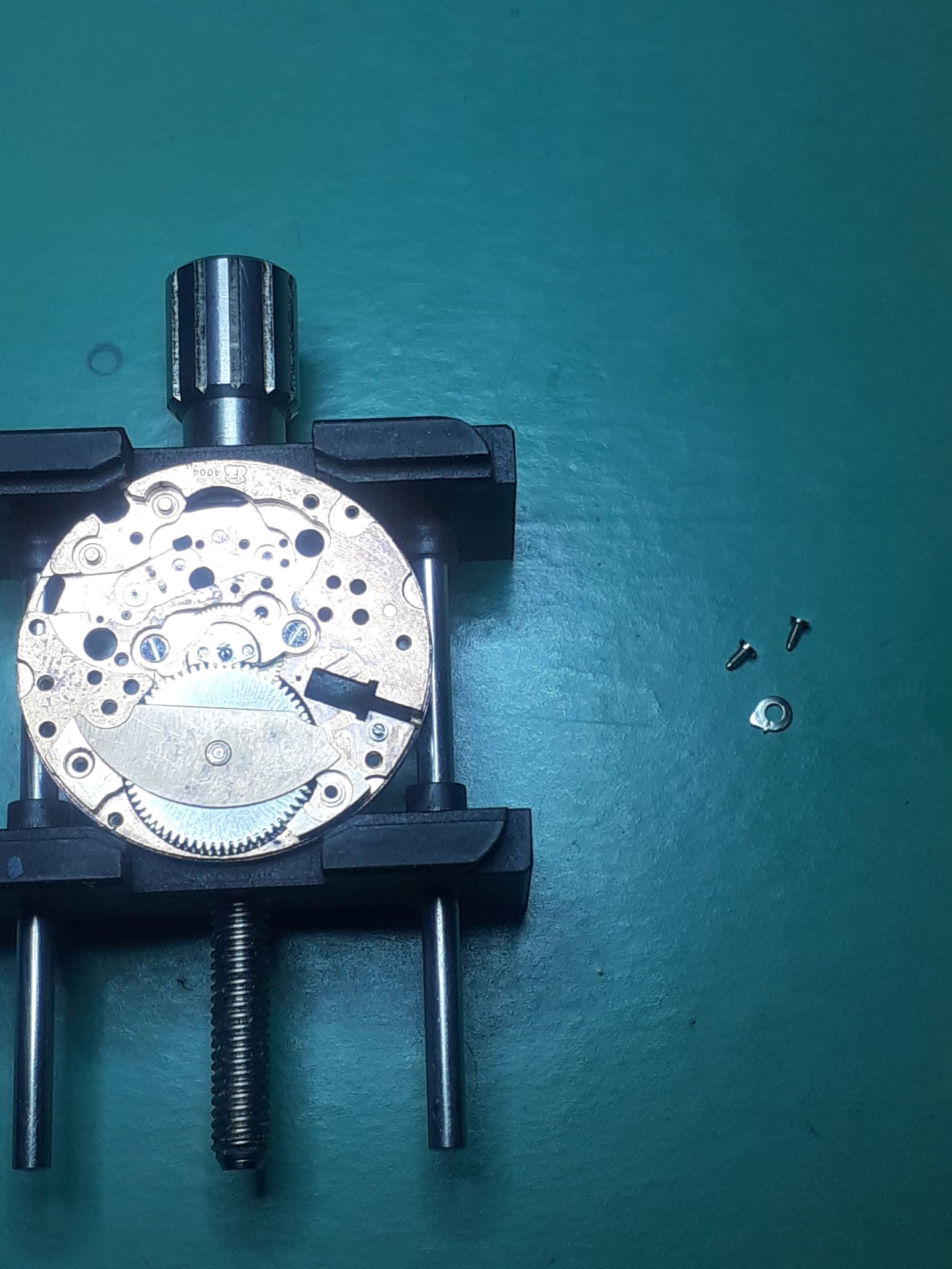 Daarnaast zijn meerdere schroeven flink beschadigd. Heeft de wijzerplaat vreemde schade en waren de wijzerplaat poot klemmetjes (hoe heten die dingen?) al gehavend.