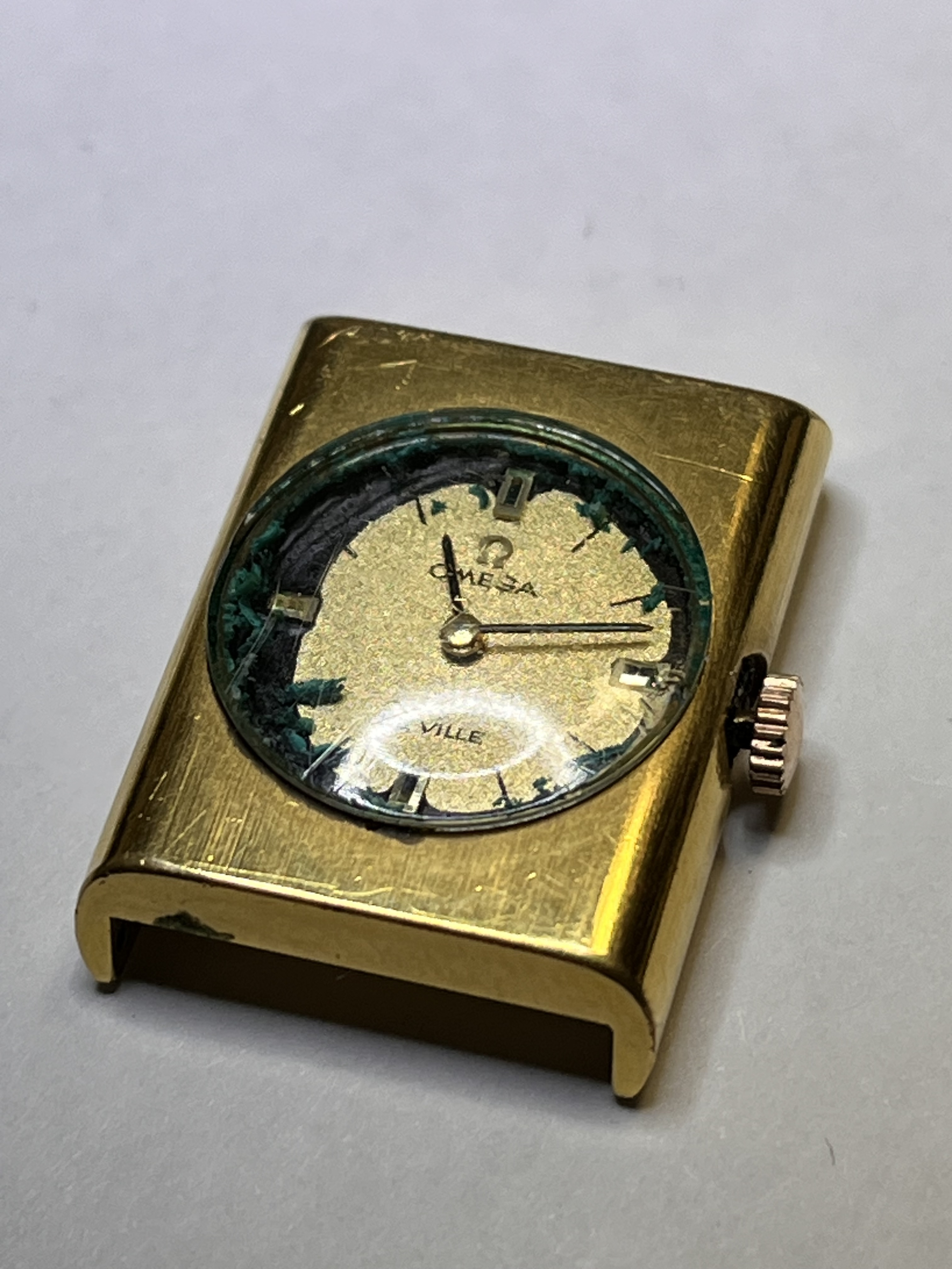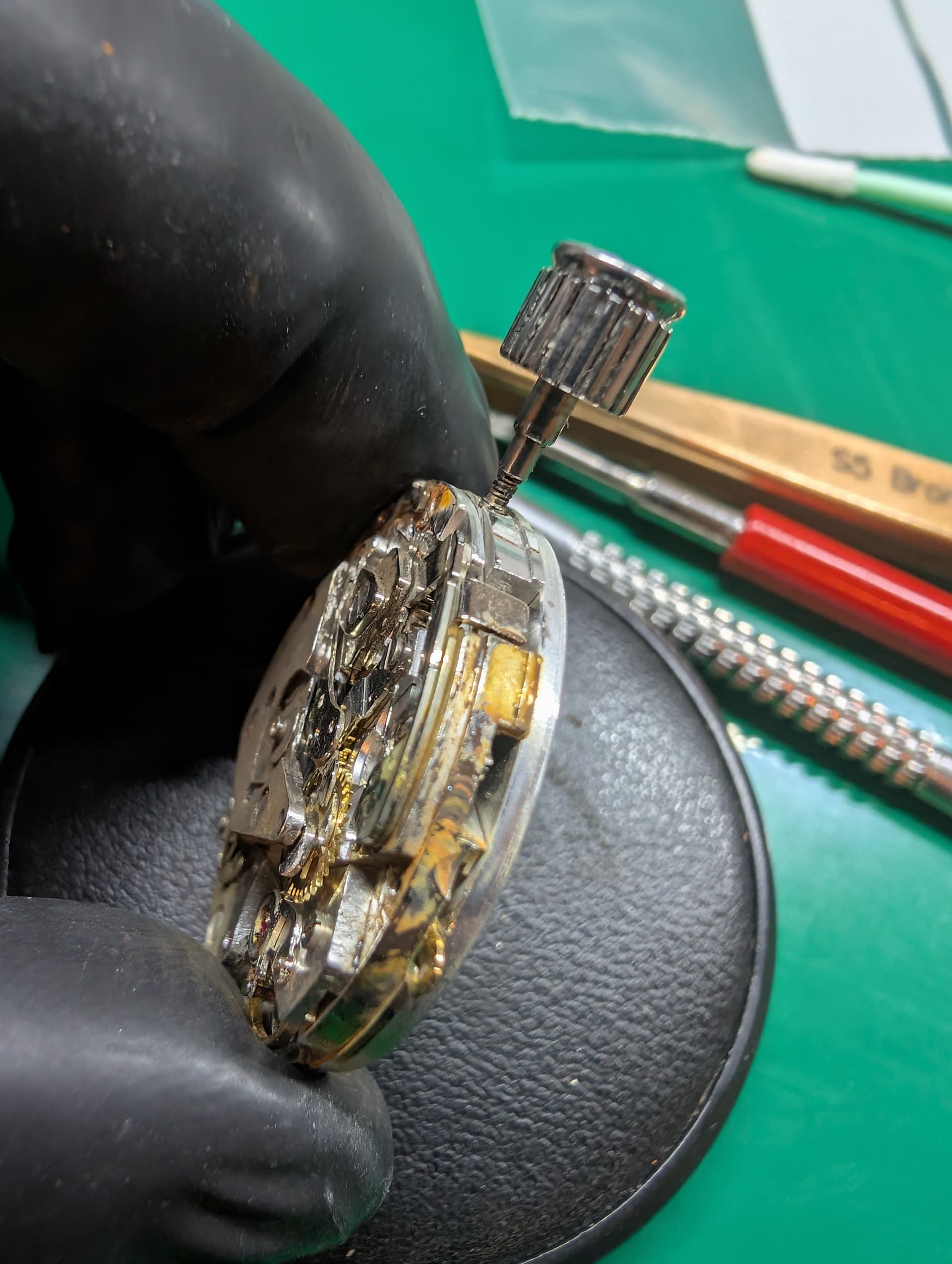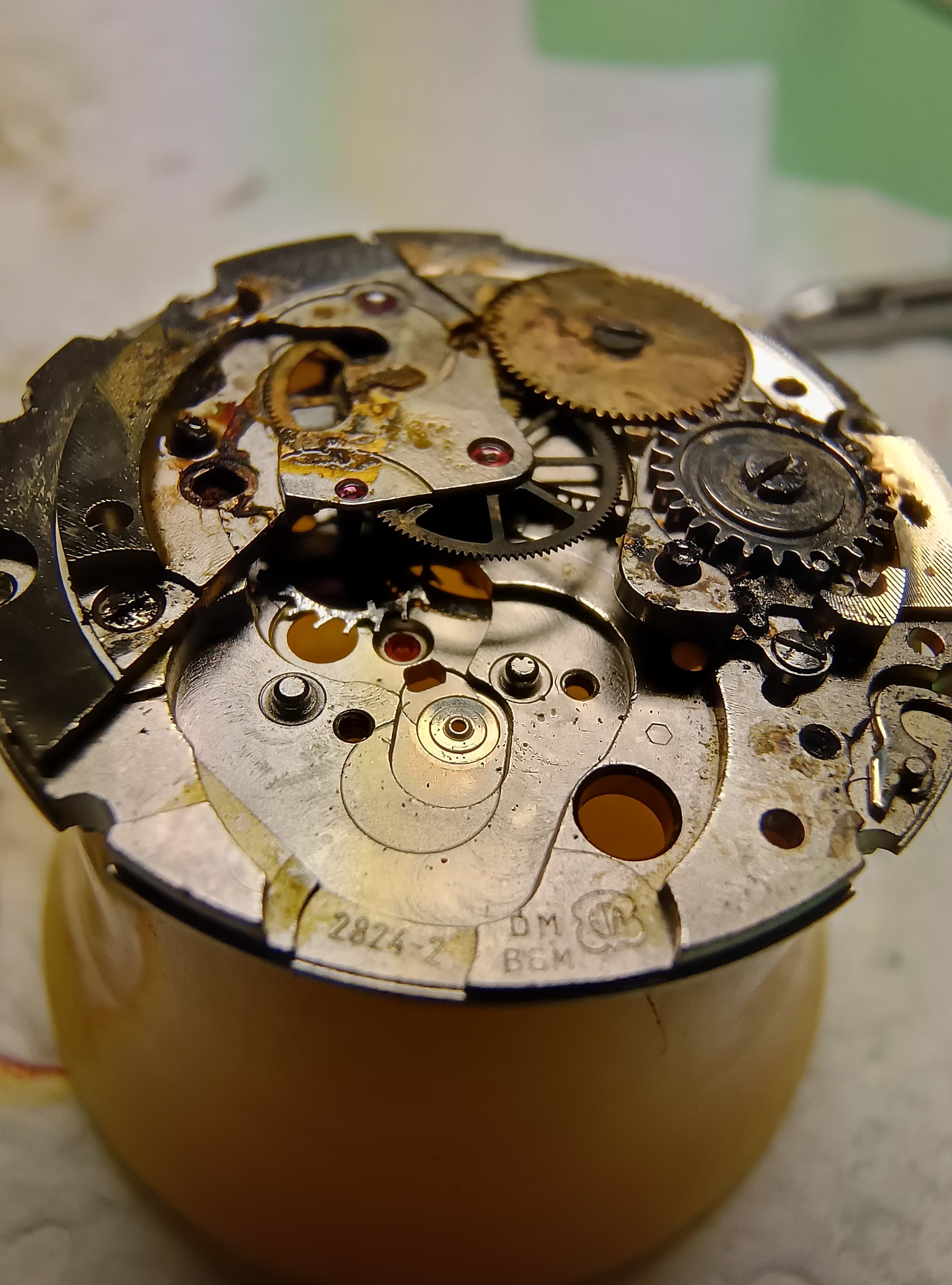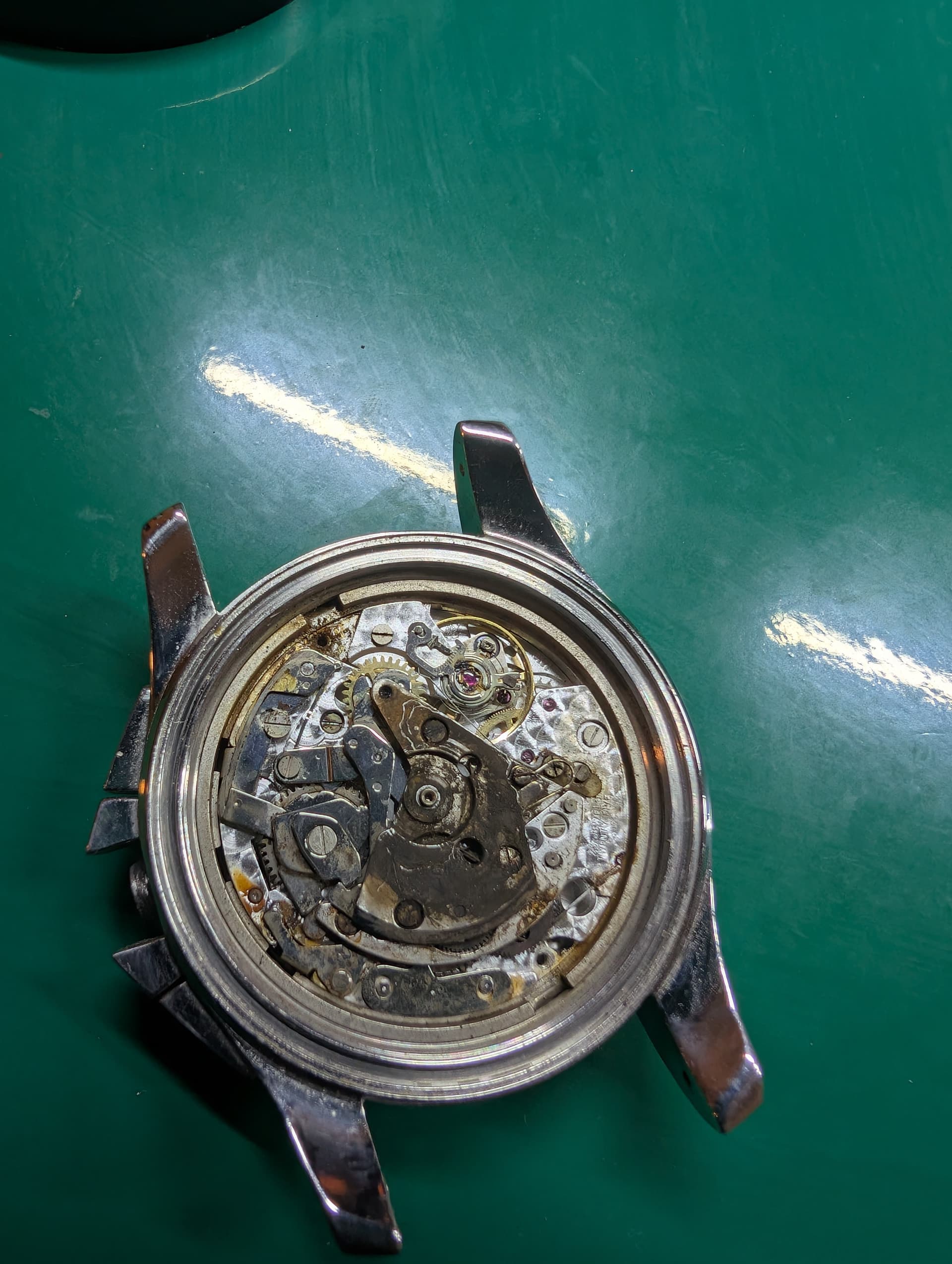 Daarnaast zijn meerdere schroeven flink beschadigd. Heeft de wijzerplaat vreemde schade en waren de wijzerplaat poot klemmetjes (hoe heten die dingen?) al gehavend.
