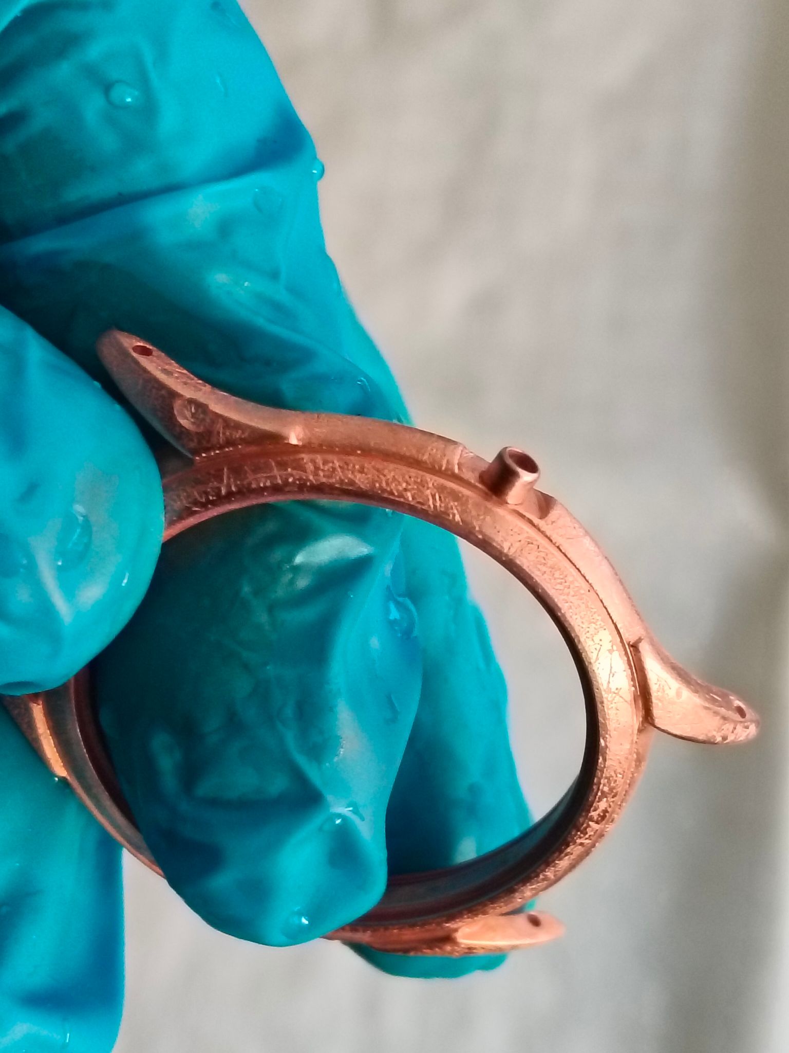 Ik heb me dus niet gefocust op de krassen om deze er zoveel mogelijk uit te halen. Deze keer heb ik daarom maar twee koperlagen aangebracht, elke laag tussen de tien en vijftien minuten op 0.09-0.13 ampère