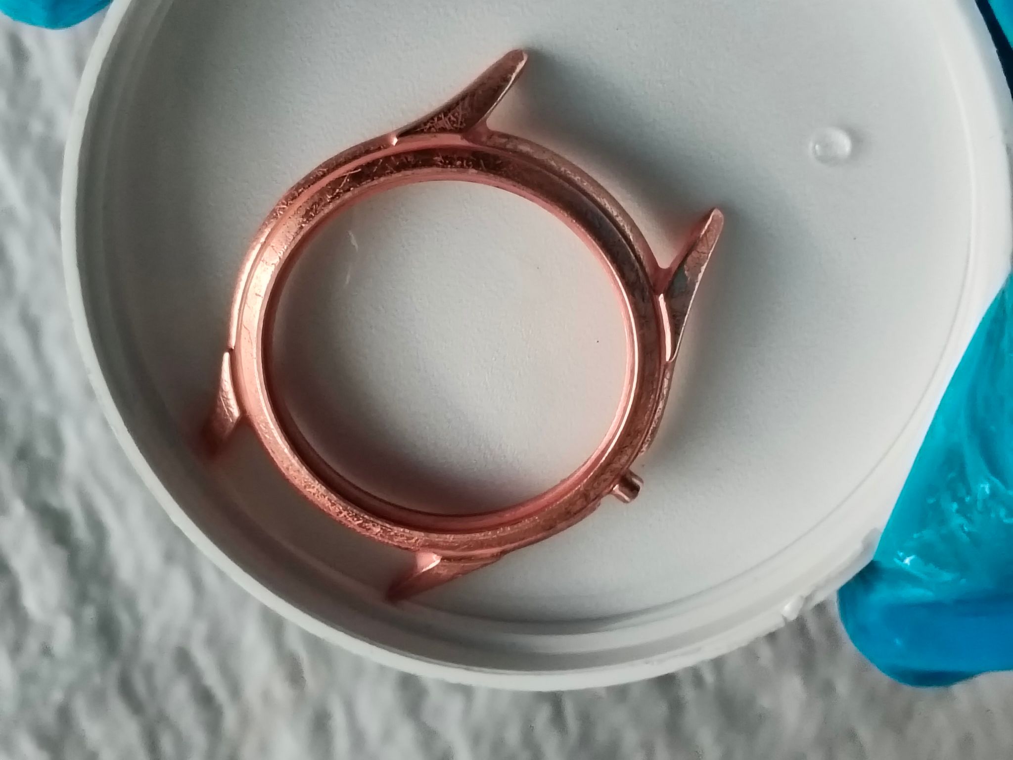 Het zal met een nieuwe chroomlaag al veel beter worden, of misschien doe ik palladium als toplaag. Ik vind palladium echt prachtig. Of rhodium, nog niet mee gewerkt, dus we zien wel wat het gaat worden.