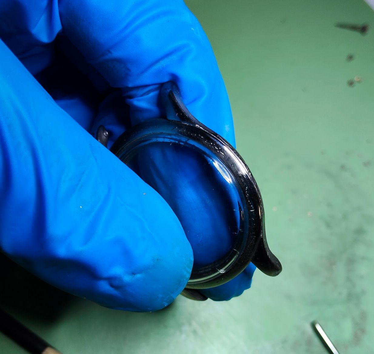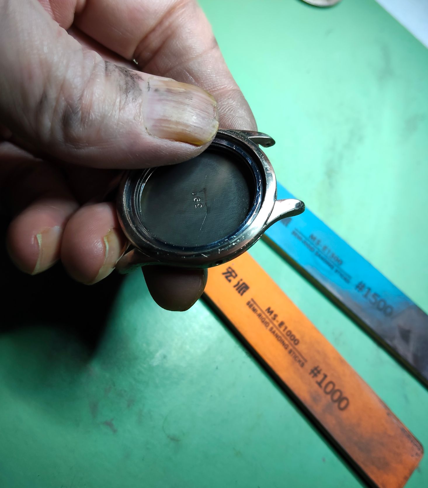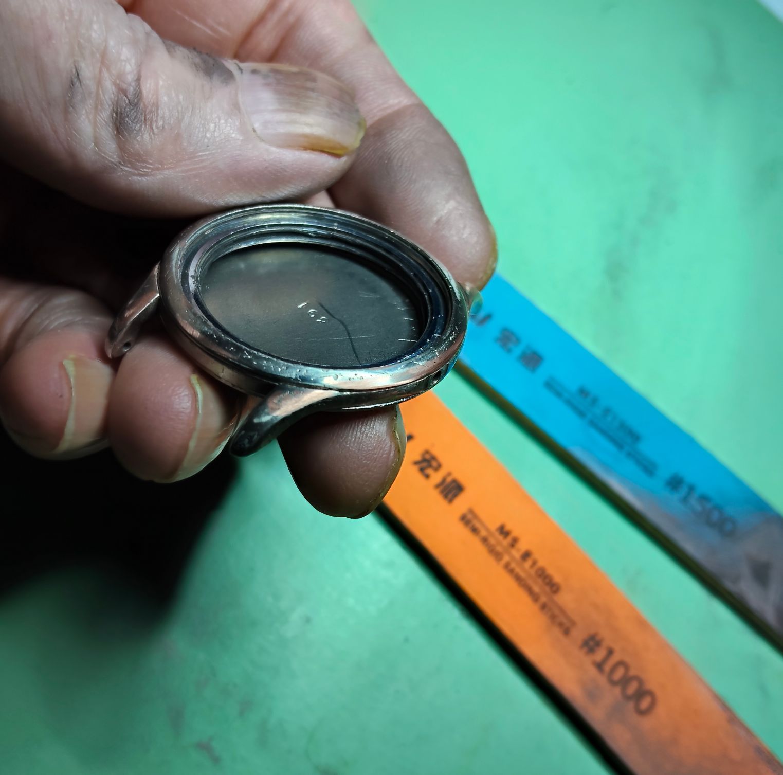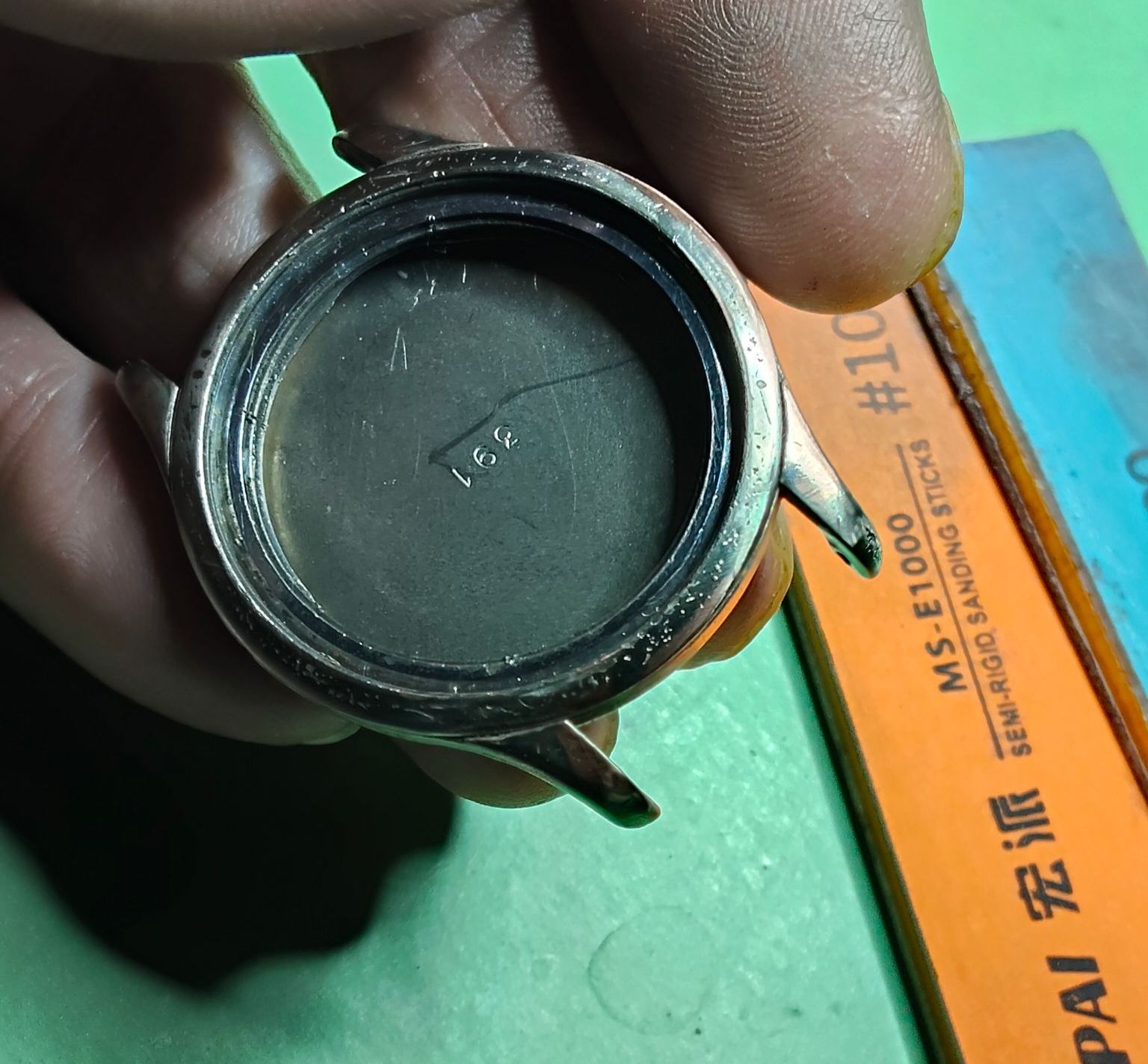 De vorige ronde en nu de laatste ronde heb ik de bezel en het glas erin gezet, zodat het wel passend blijft.