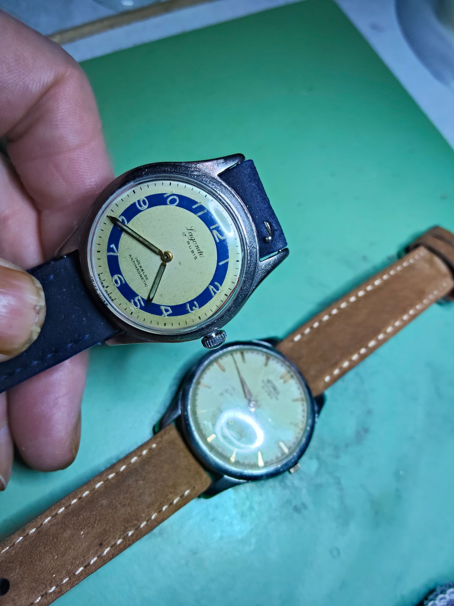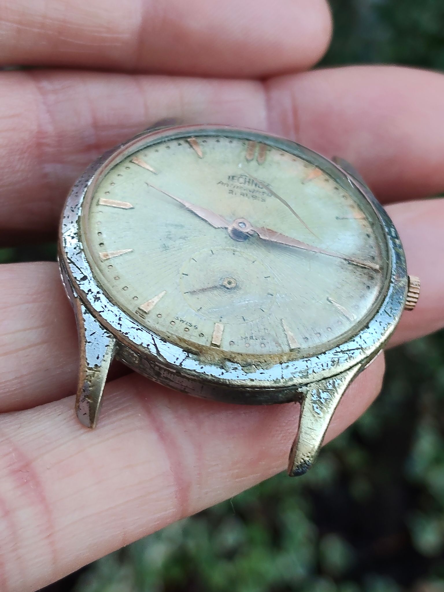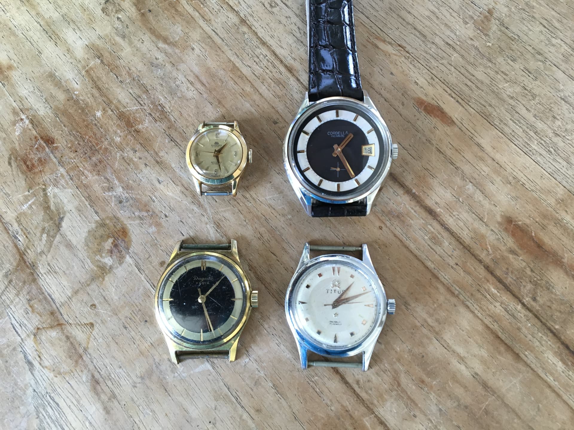 Goedenavond beste mensen, vandaag geen tijd gehad voor de vintagehorloges, maar vanavond ga ik een begin maken aan een herrestauratie van een Atlantic. Aan deze kast is een paar weken geleden gewerkt, gestript en afgewerkt met een toplaag van palladium. Palladium is mooi, maar hoort niet op een kast die nog zo vol zit met krassen. Ik had gehoopt dat het eindresultaat een mooie kast zou zijn met een glanzende toplaag. Helaas was dat niet het geval. Dus ik kwam op het idee om deze kast voor een tweede keer aan te pakken en dan net zo af te werken als de Technos, die hierboven staat afgebeeld.