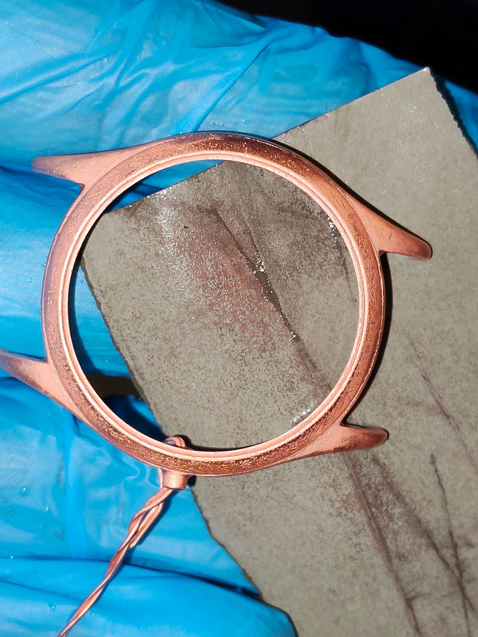 Ik ben nu bezig met de opbouw van de koperlagen, elke ronde ongeveer vijf minuten.