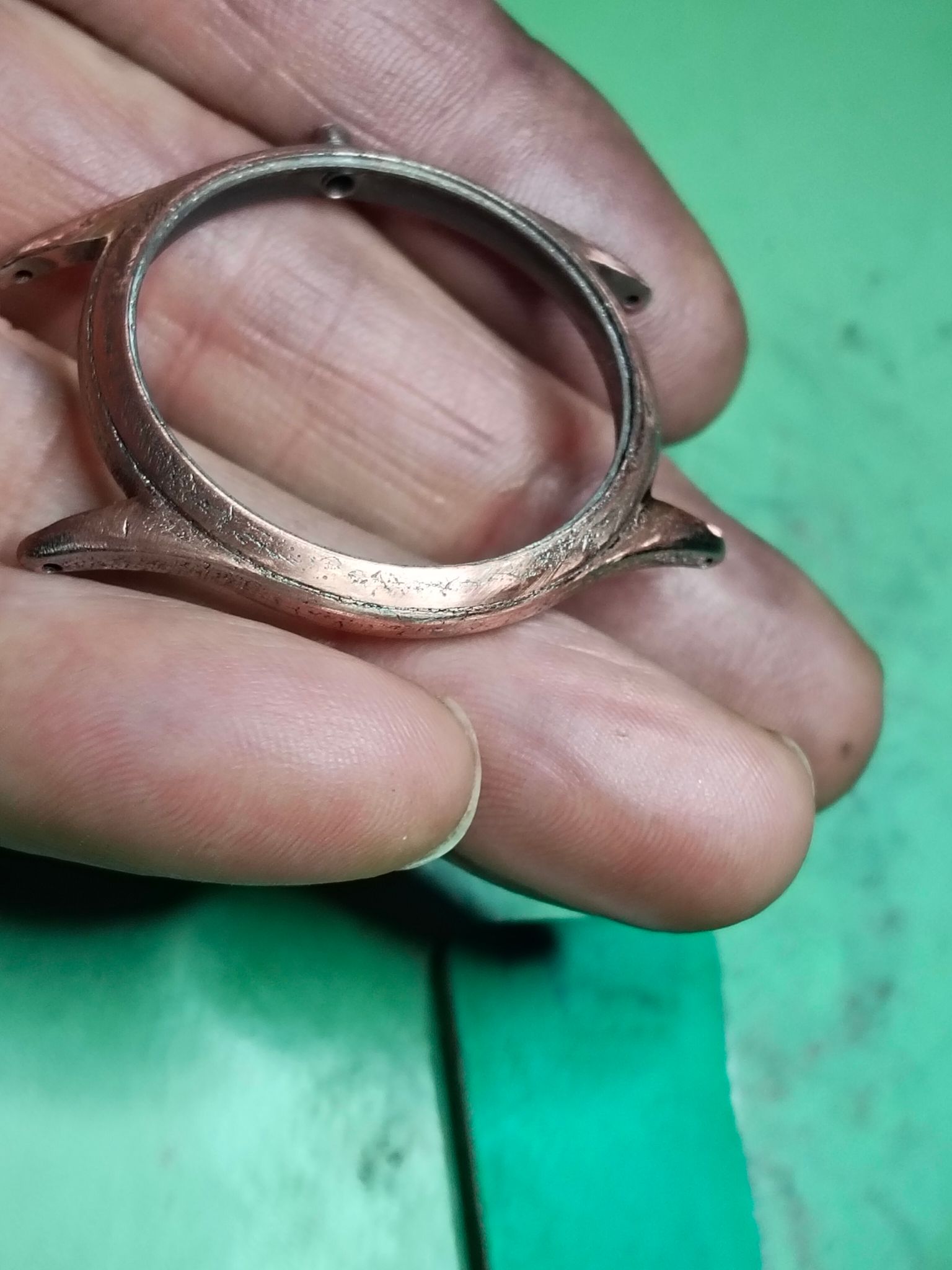 Ik had vorige week speciaal een koper electrolyt besteld bij de verzinkshop om de krassen op te vullen, maar toch vond ik het nog niet goed genoeg.