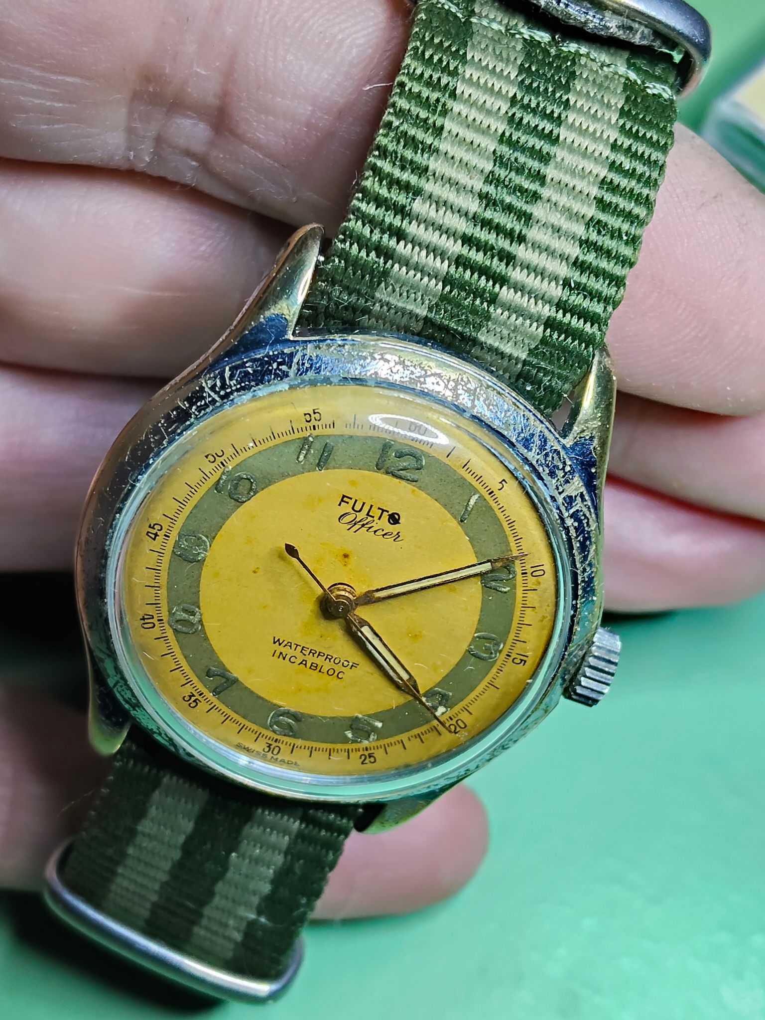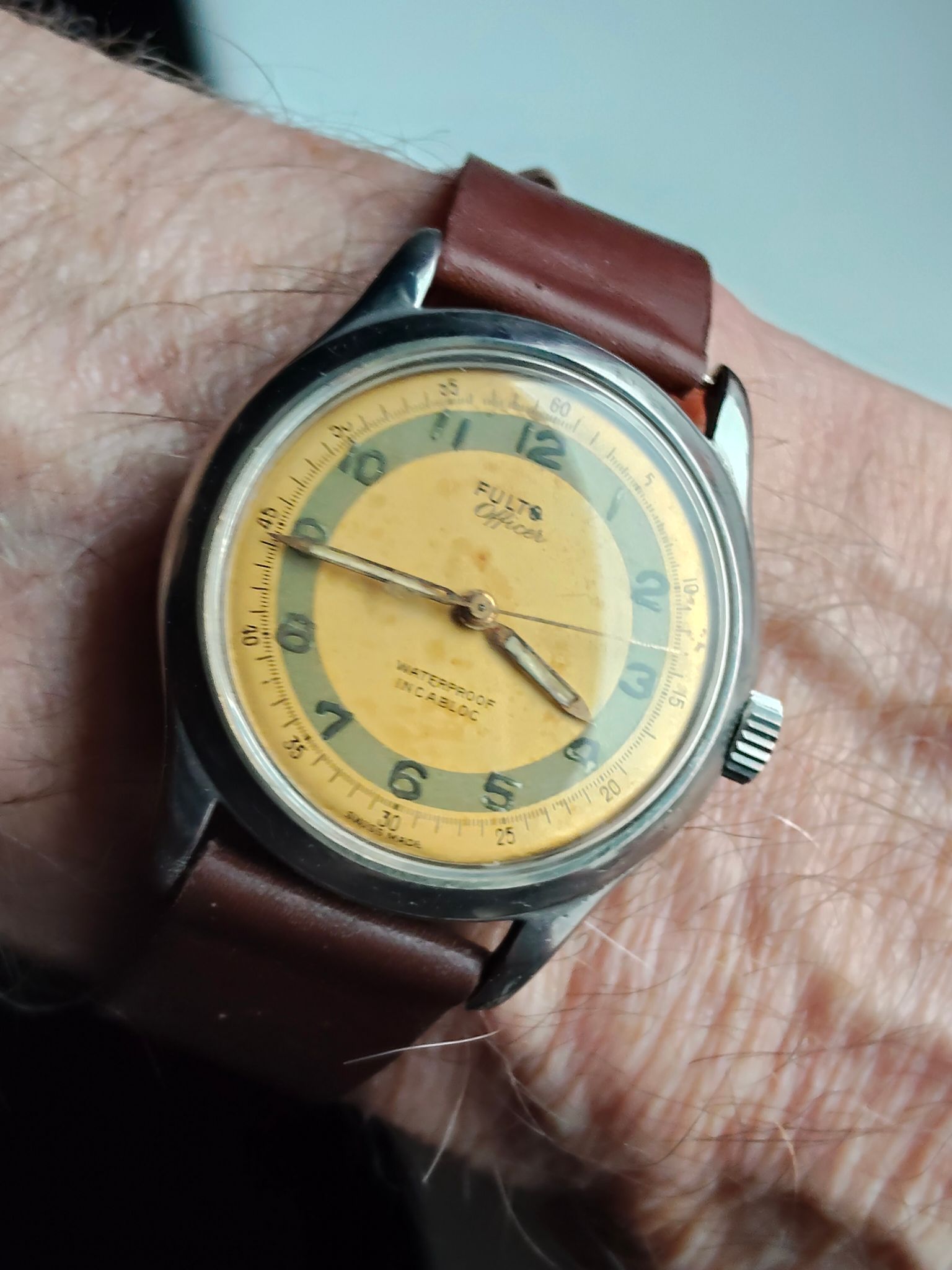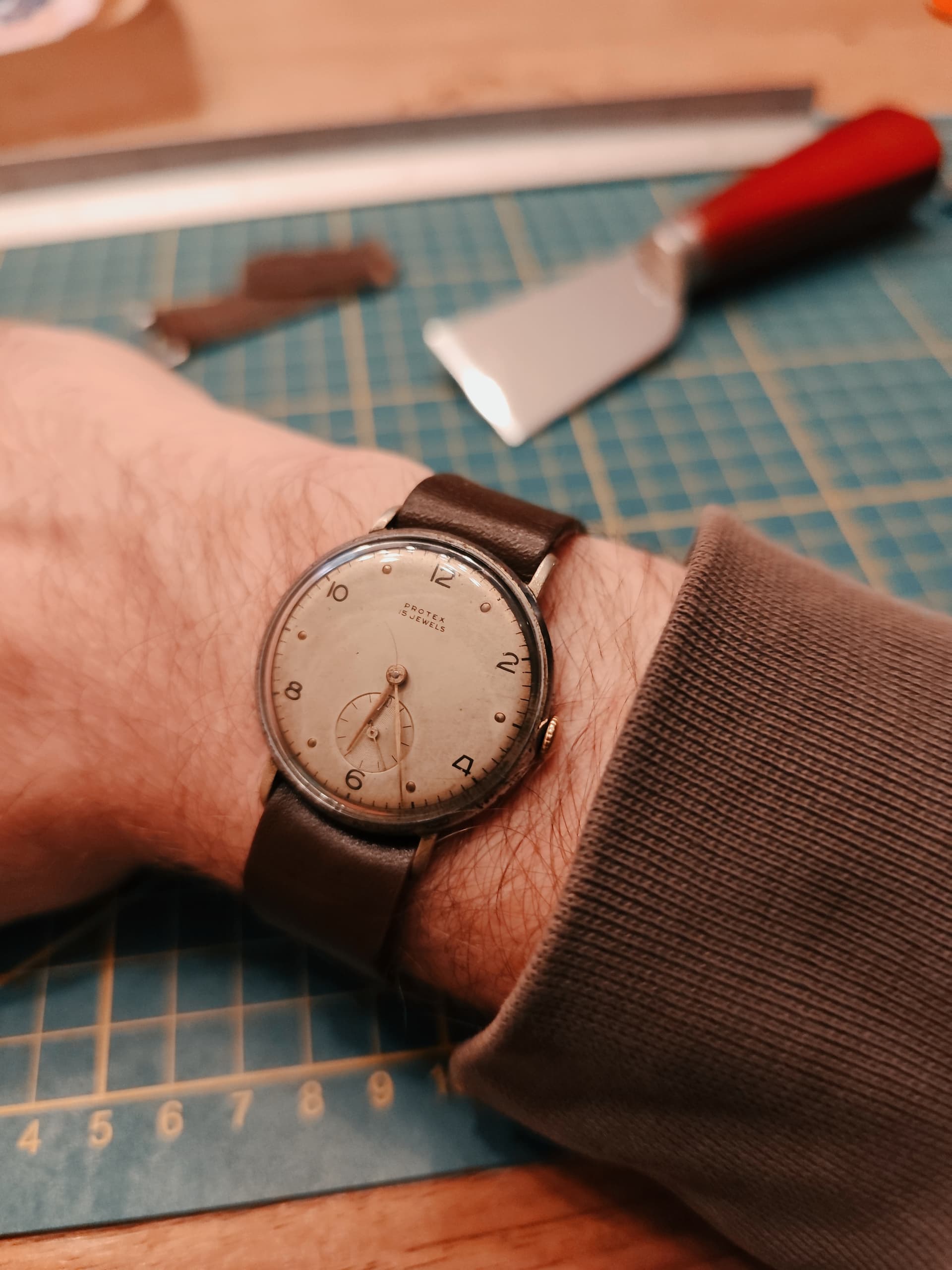 Van een lederen Nato heb ik een single strap gemaakt voor een vintage horloge met fixed lugs.