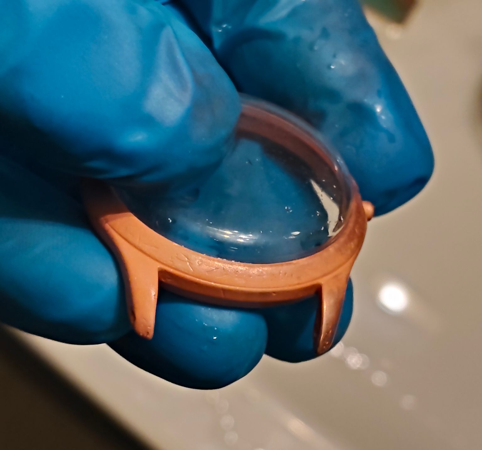 Op dit moment hangt het weer in het koperbad, en laat het daar een minuut of 20-25 in hangen.