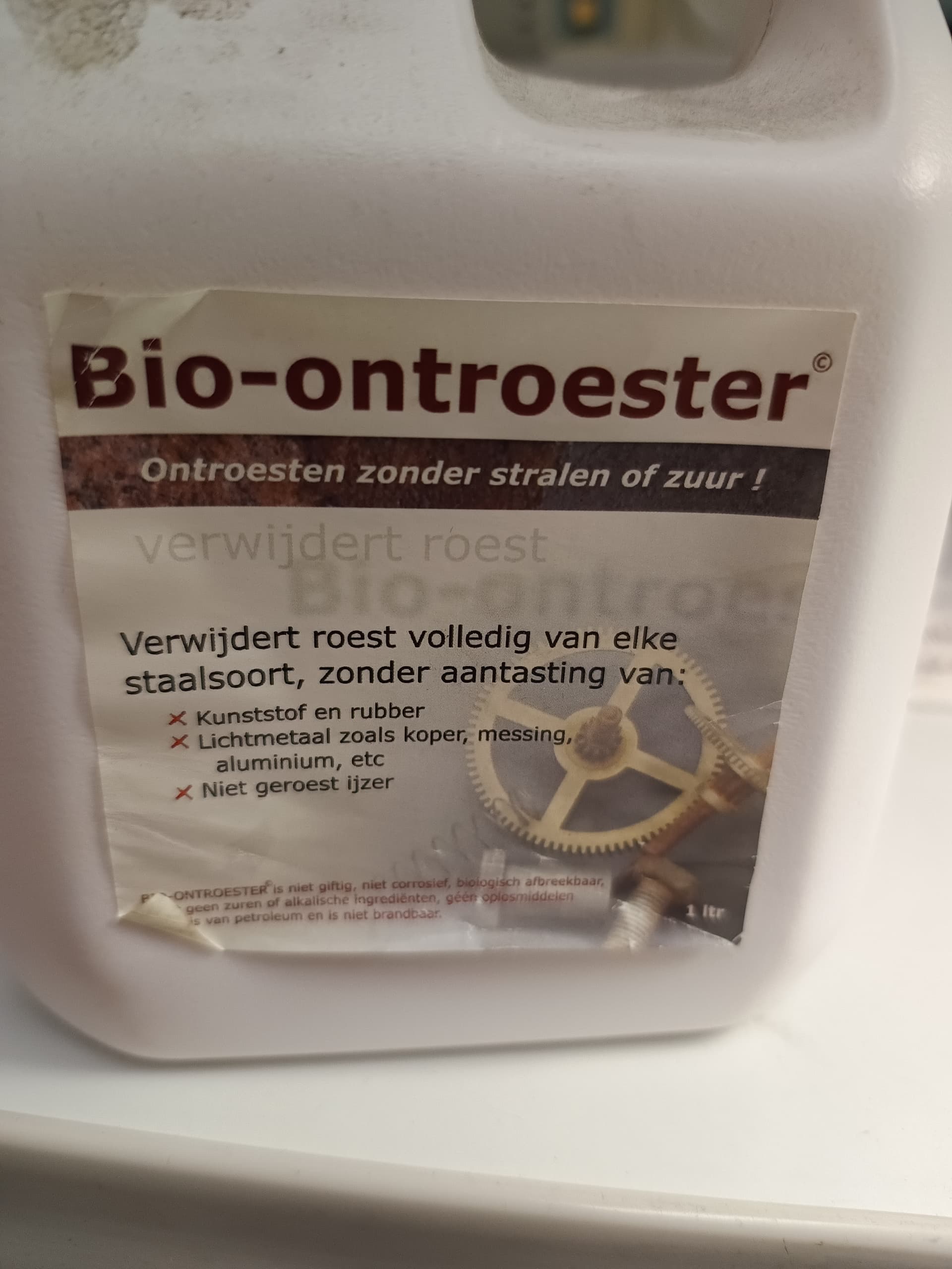 Ik heb er special ontroest middel voor lost alleen de roest op en laat de rest van het materiaal wat niet is aangetast met rust dus doet ook geen schade aan niet geoxideerd materiaal.