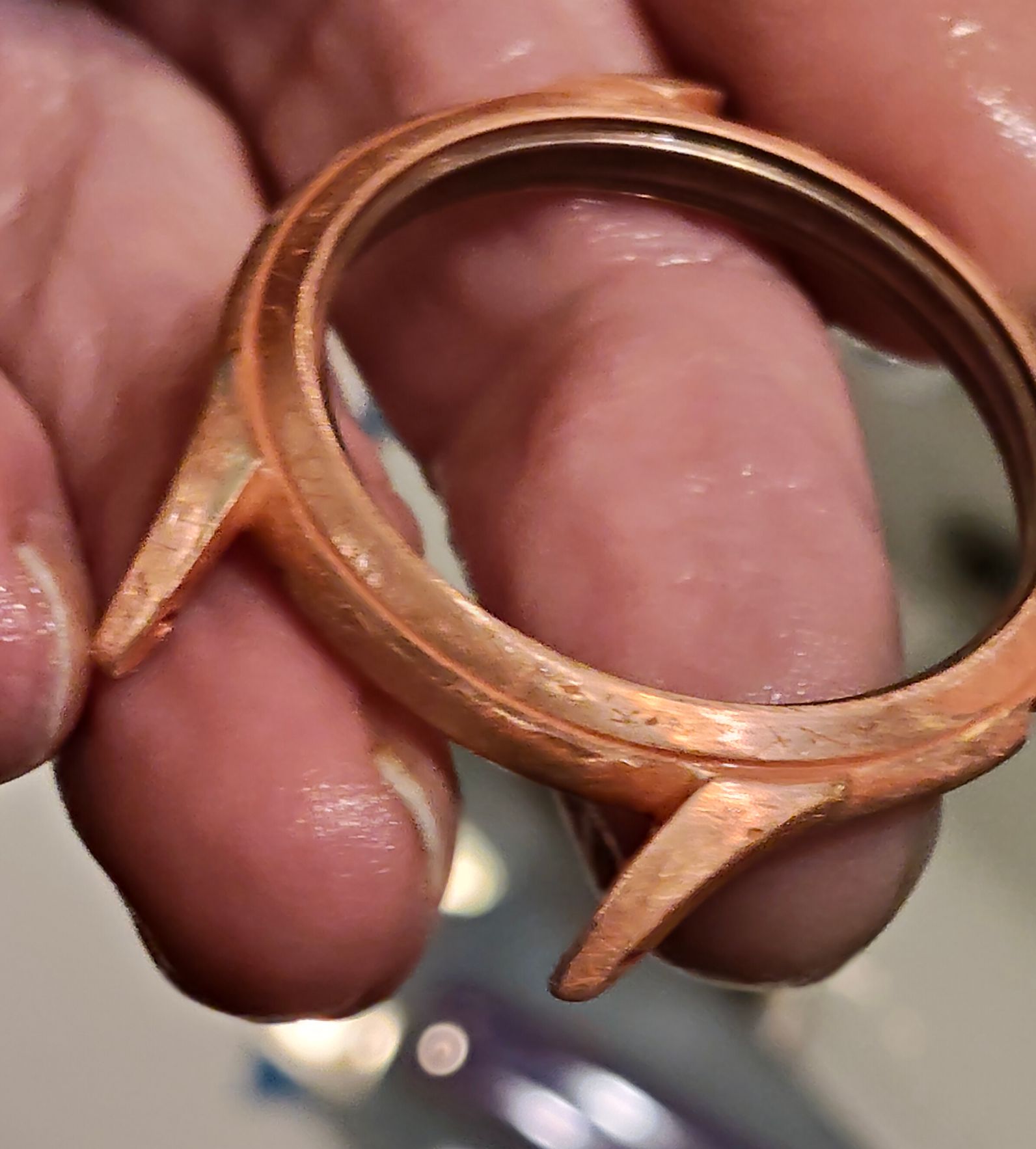 Aardig wat werk, maar het schiet ook wel op. Misschien ga ik straks een nikkellaag leggen; dat geeft een goede indicatie hoever ik ben en eventueel daaroverheen een koperlaag. Die laag of lagen kunnen dan telkens tot aan de nikkellaag geschuurd worden.