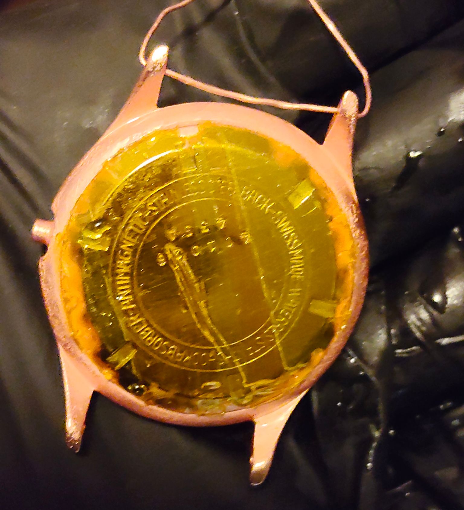 Verder lijkt het uurwerkje goed, niet versleten alleen schoonmaken is waarschijnlijk genoeg om het lopend te maken. Verbazend werkje trouwens, super plat terwijl het wijzerverzet een erg complex mechanisme is. En een zeer compacte automaat, die niet achterop de platine zit maar naast de balans. En niet met magic lever maar een bidirectioneel palwieltje. En dan ook nog handopwinding en hacking! Een uurwerk van grote klasse. Alleen dat kunststof ‘date corrector wheel’