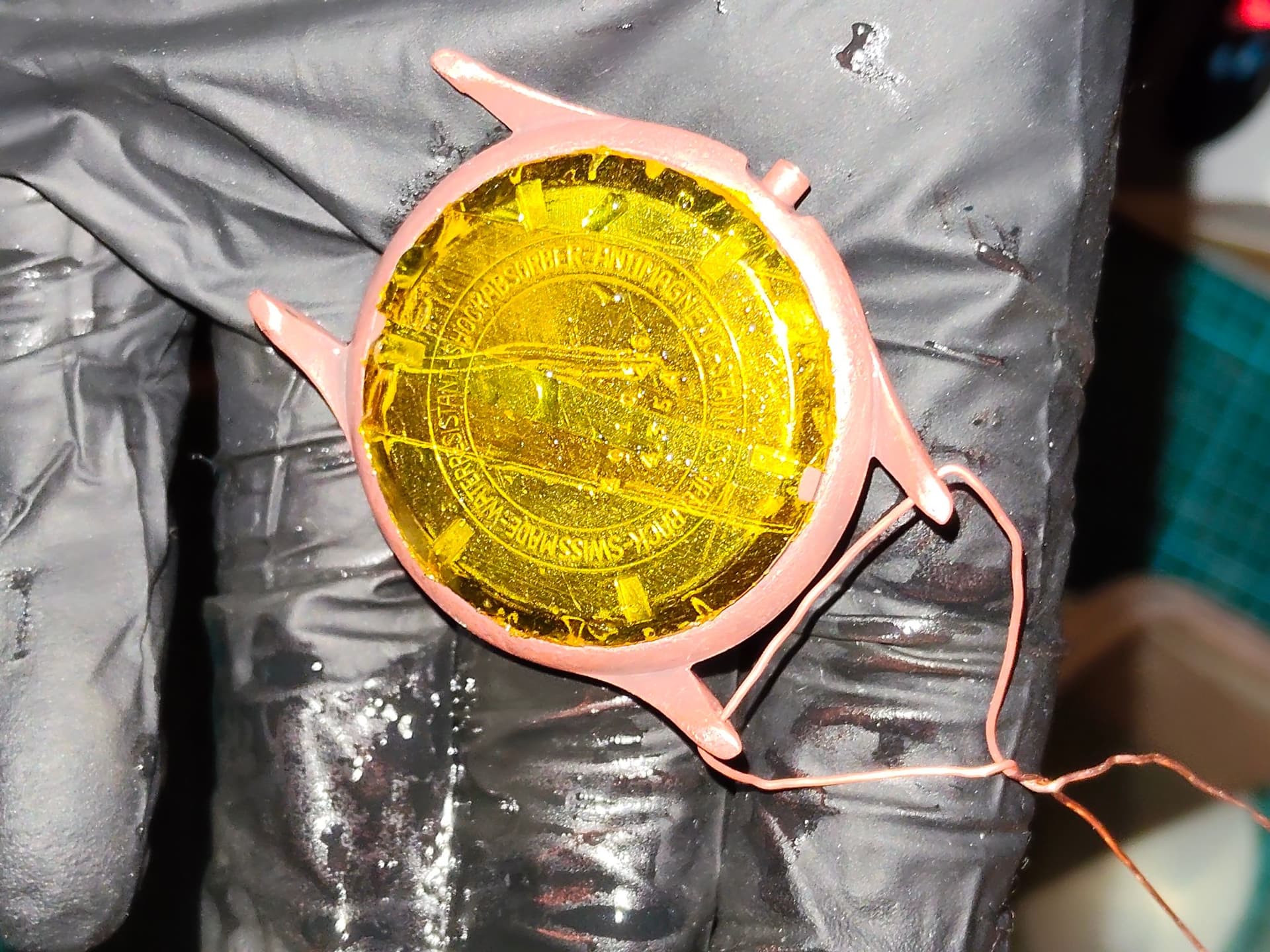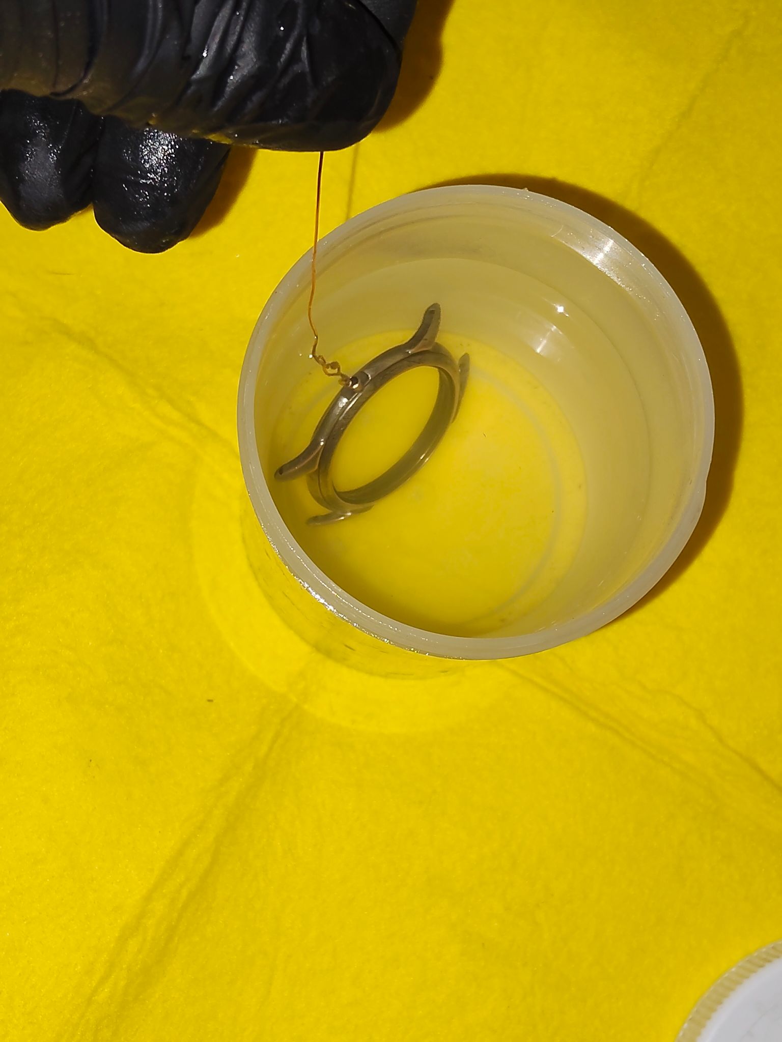 De glasvezelpen gebruik ik om kleurverschil te kunnen zien. Op vergulding heeft het geen effect, maar de messing wordt meteen een stuk doffer.