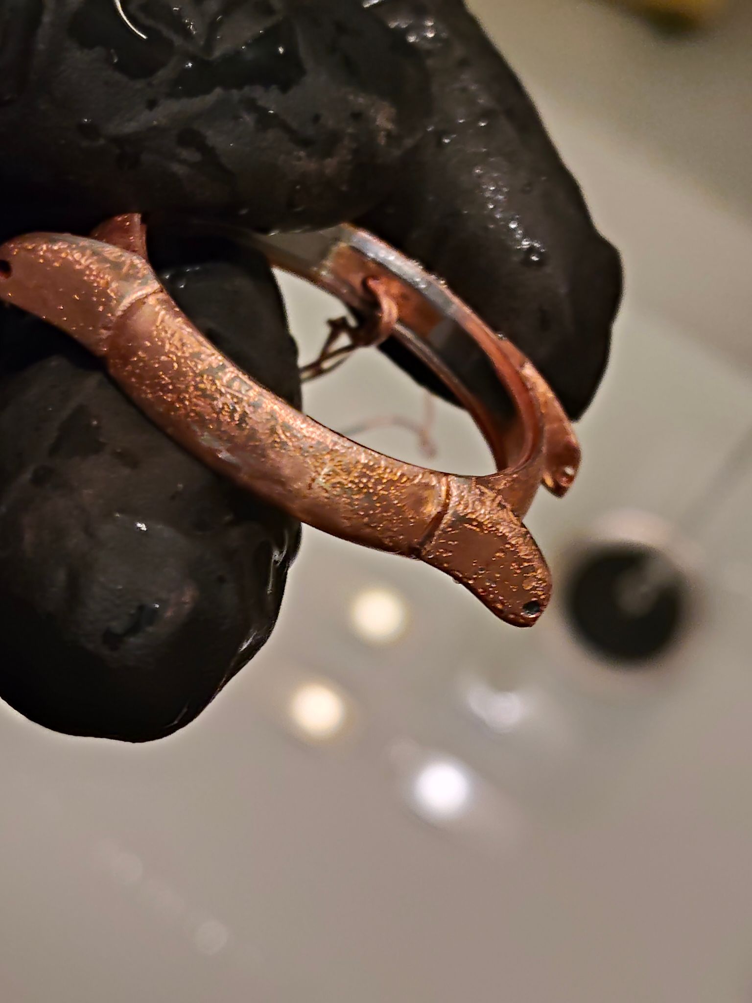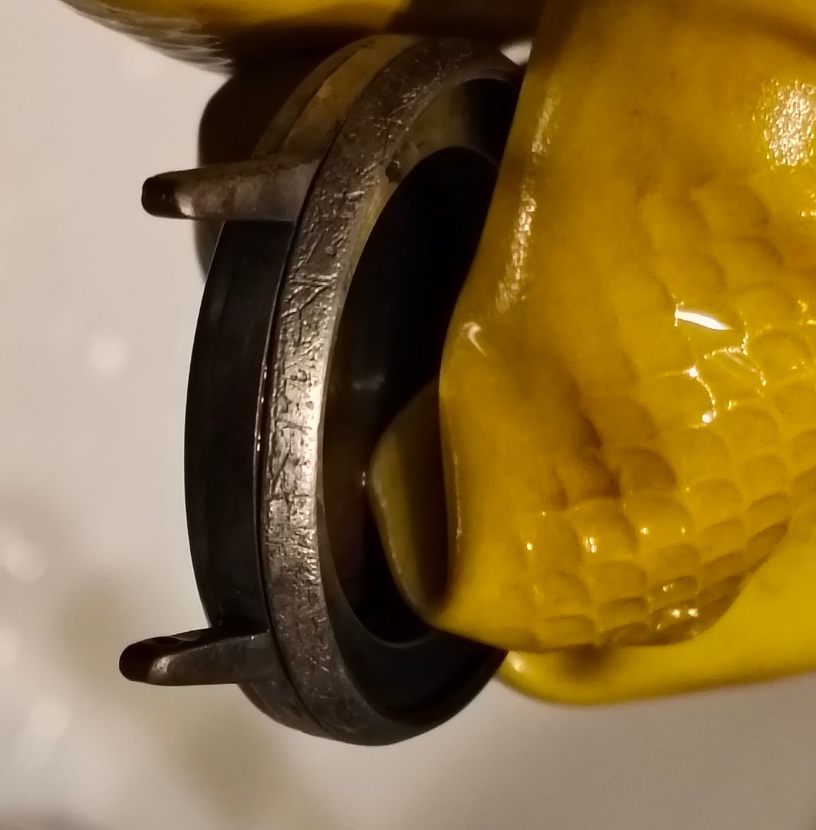 De palladiumlaag lijkt een beetje mattig maar dat is juist heel goed voor de hechting van de goudlaag die er nog overheen komt.