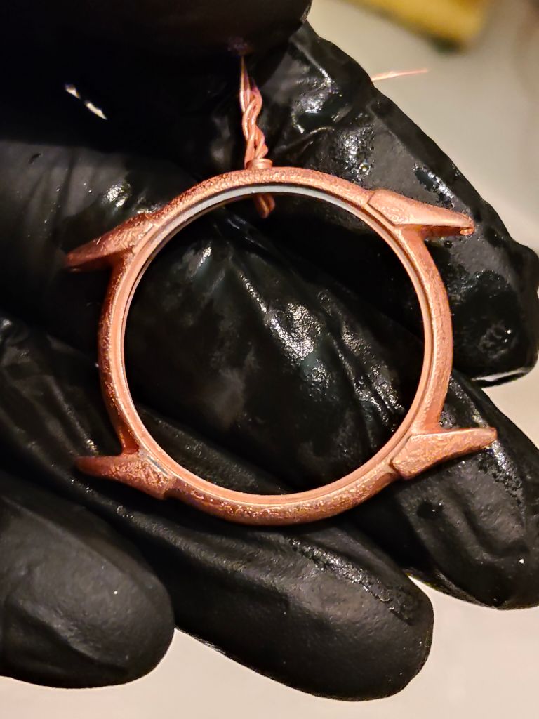 En de kast van Serge is zover klaargemaakt voor een palladiumlaag. Dat doe ik morgen bij daglicht, eerst palladium en daarna goudlaagje.