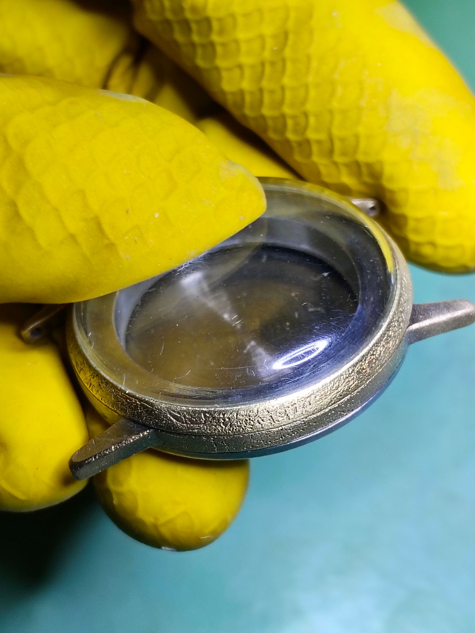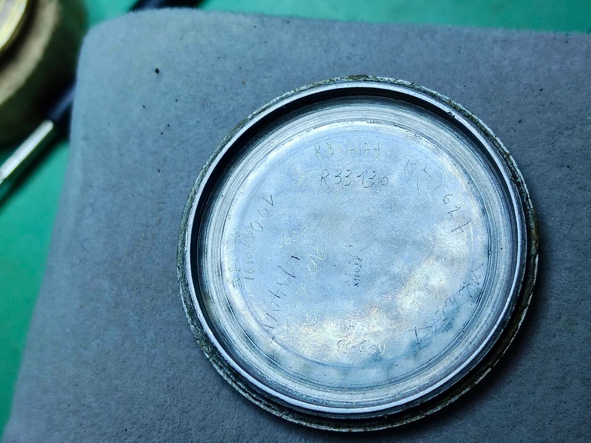 Dit gekke ding van een forumlid, net voltooid. Glaasje moest ook opnieuw gelijmd, en er was wat koperoxide die weggeschraapt moest worden. Massief 925 zilver, cal. 825 uurwerkje - dat met een nieuwe veer echt weer prima gangwaarden laat zien. Ruwweg midden jaren '70.