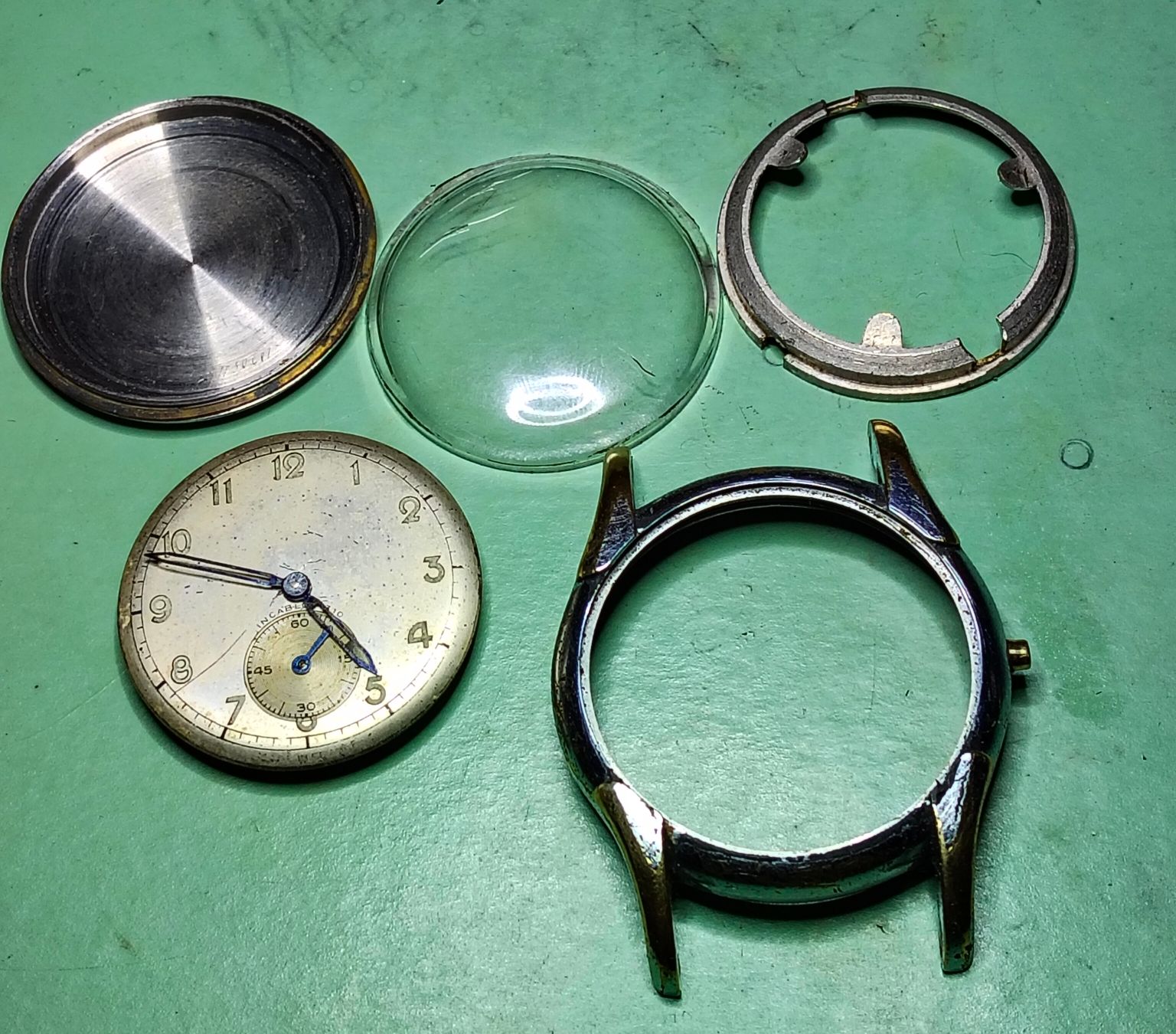 Maar ik heb het uurwerk voorzien van een nieuwe veer, een nieuw glas en een nieuwe band.