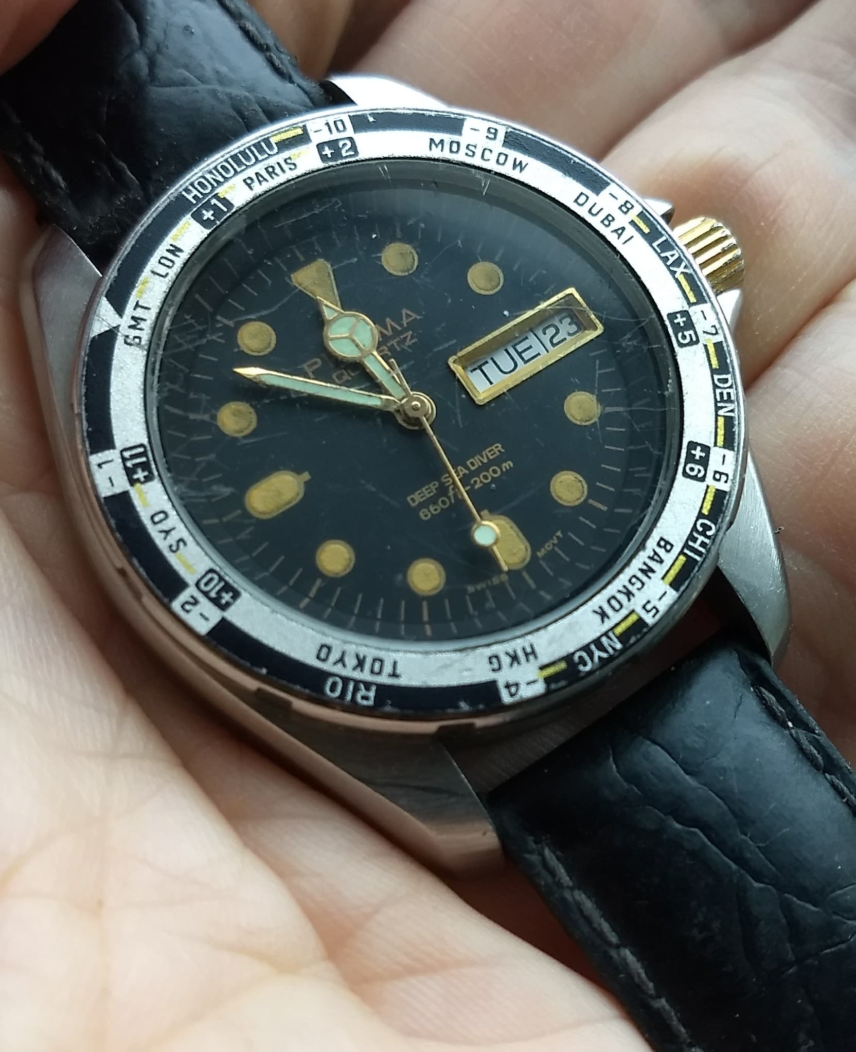 Zo kocht ik deze aardige Prisma ‘200mtr’ duiker waar ik in eerste instantie niet veel meer kon dan batterij erin, en beetje pielen met de kroon/stift, en de ‘tester’ totdat hij netjes bleef lopen.
