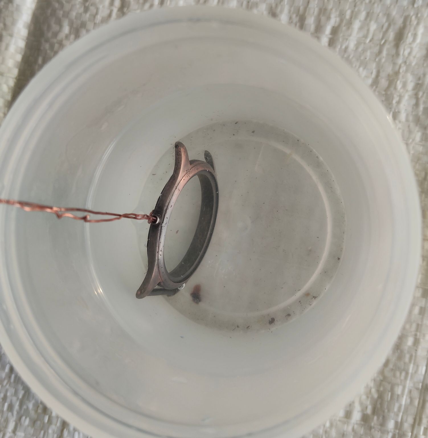 Voor het weer in het bad wordt gehangen, eerst 30 sec in het zuur en afspoelen met demiwater.