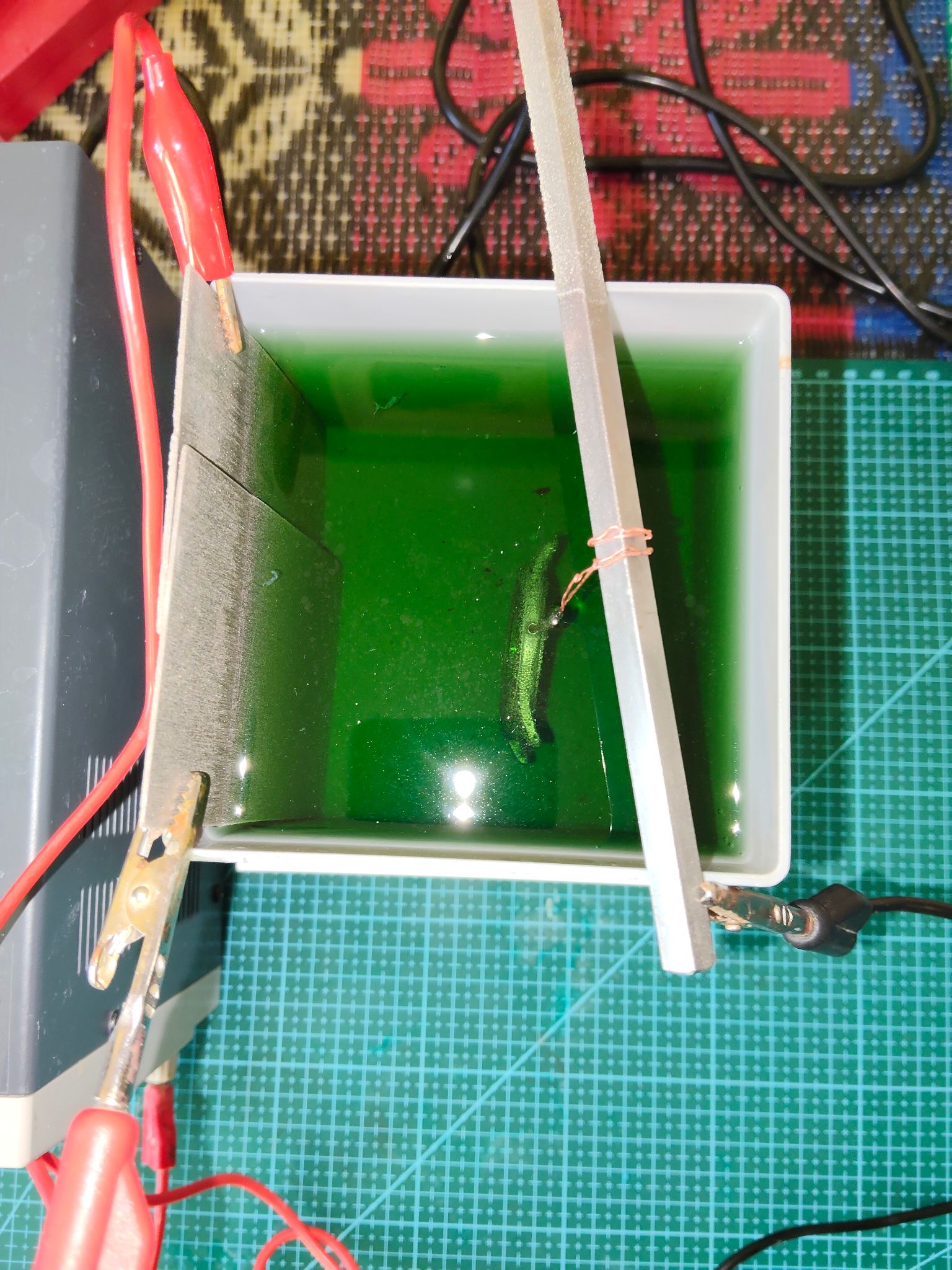 Op dit moment hangt de kast in het nikkelbad op 0.11 A
