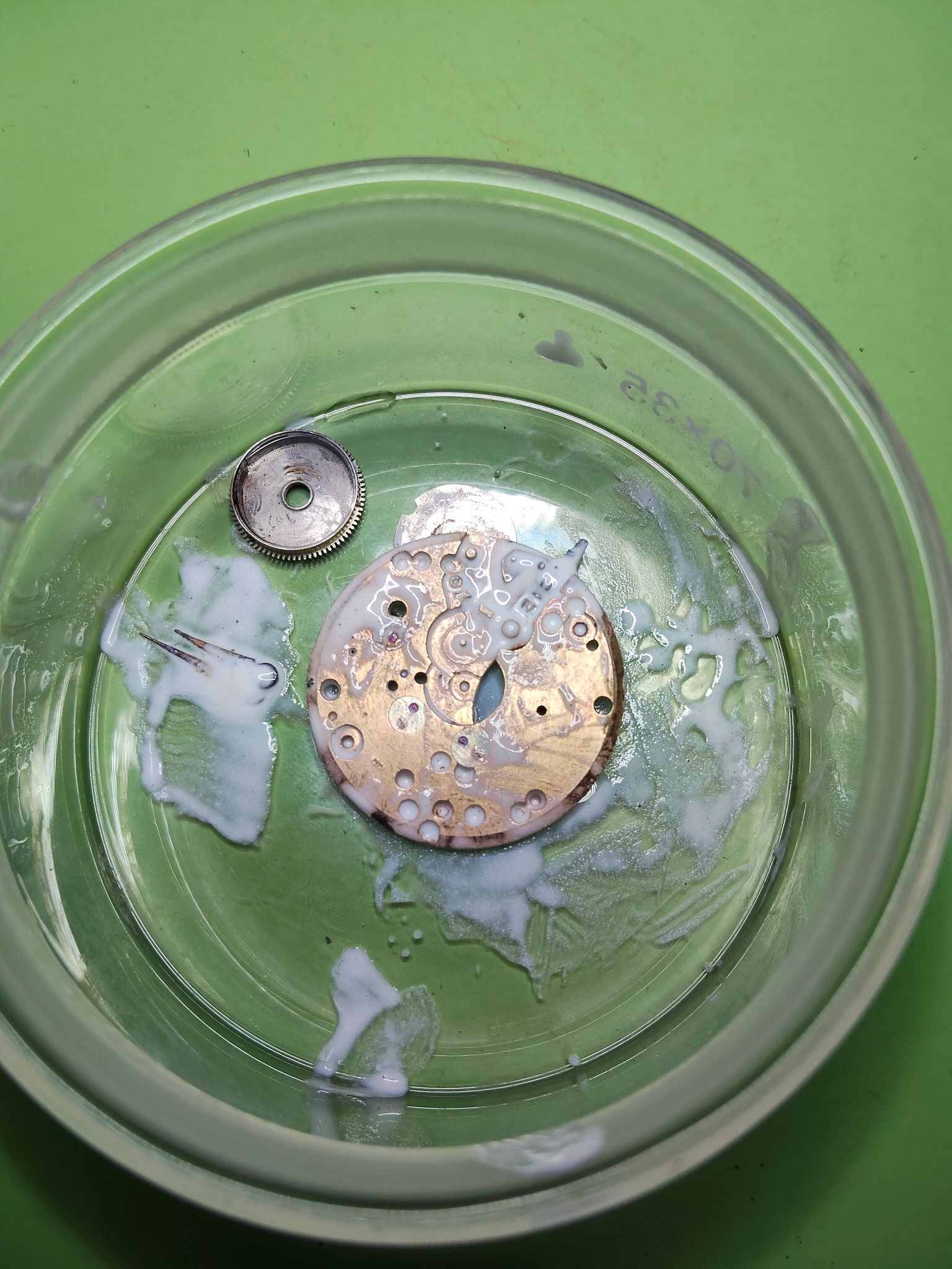 Zoiets vermoedde ik al. Het enige waar ik aan twijfelde is de synthetische robijnen. Hoe zitten die vast in het uurwerk? Schellak?