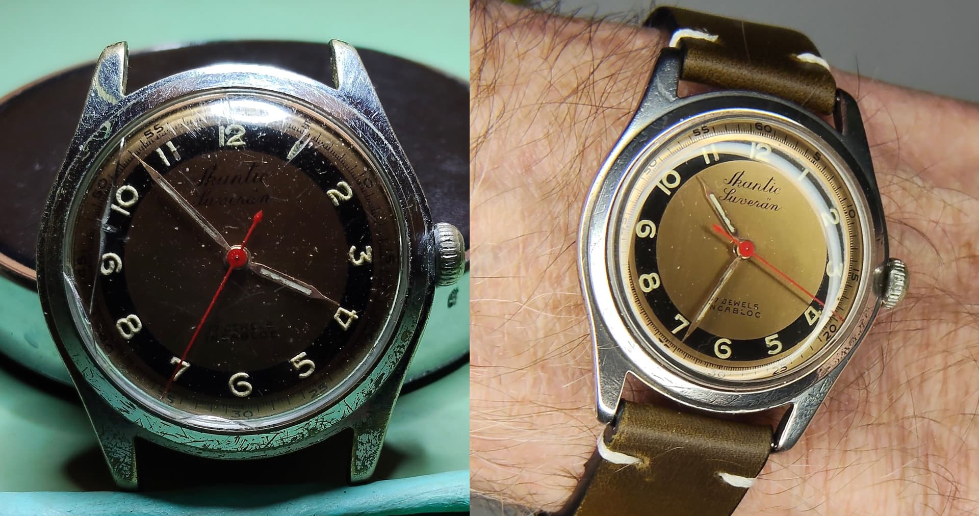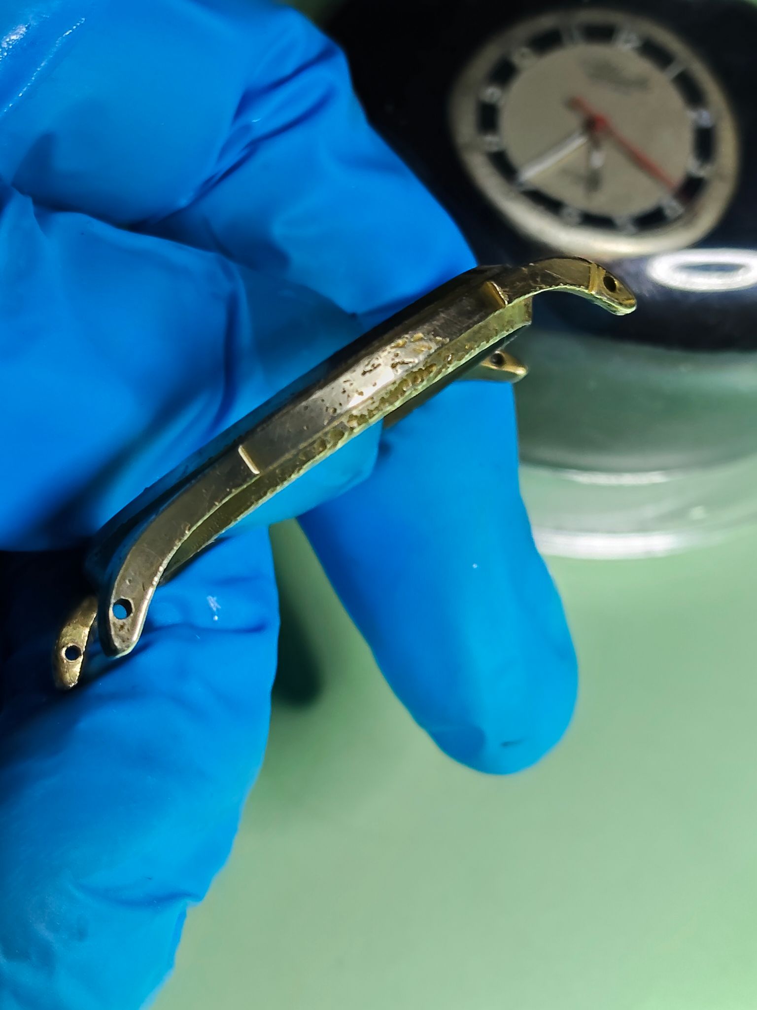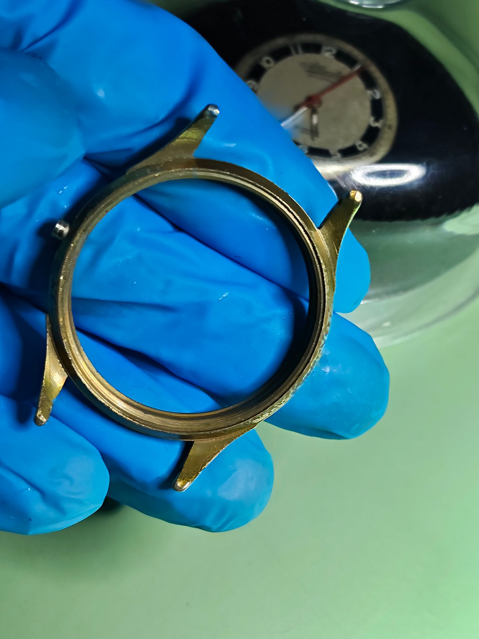 Vertinnen is een mooie, makkelijke metaalbewerkingstechniek. Zelfs ik kan dat. Ik weet alleen niet of het ook bij horloges werkt, maar dat lijkt me wel. Ik doel op: laagje soldeertin verhit aan oppervlakte toevoegen en dan gladstrijken plus vijlen. Niet vertinnen als in galvaniseren. Zoals Lugs soms gerepareerd worden, maar dan minder grof aanbrengen.