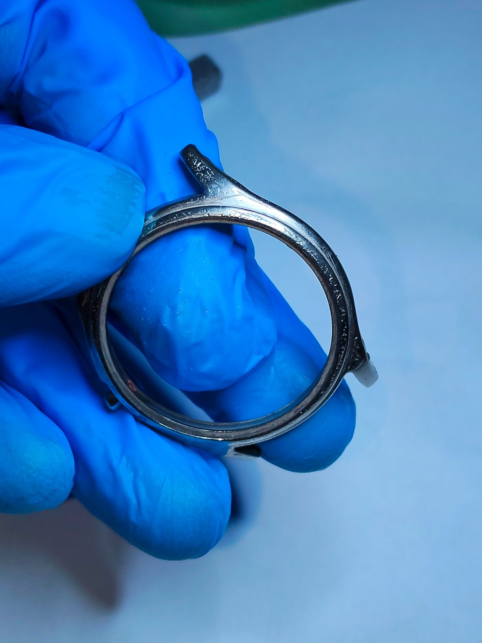 Ik ga het nu zachtjes met een microvezeldoekje met metaalpolijstvloeistof oppoetsen, zodat het goed glimmend en het chroombad ingaat.