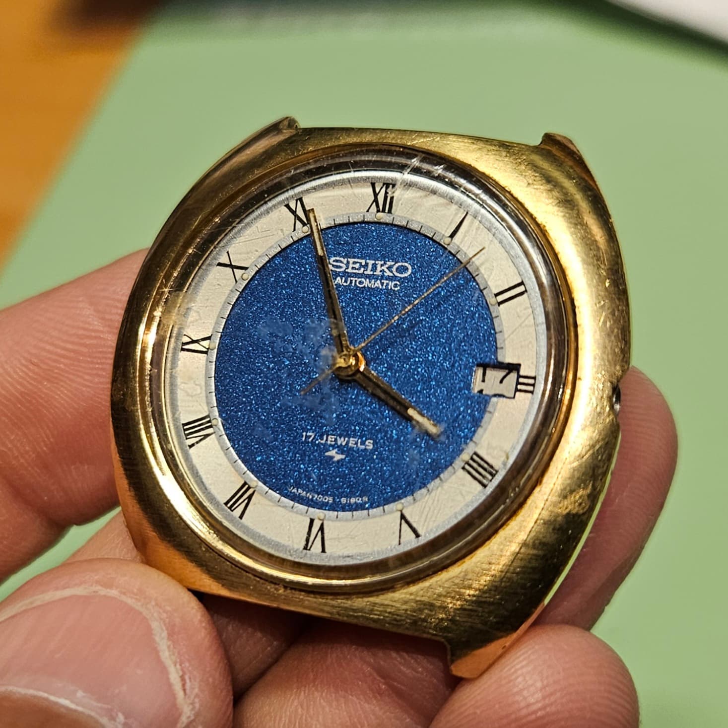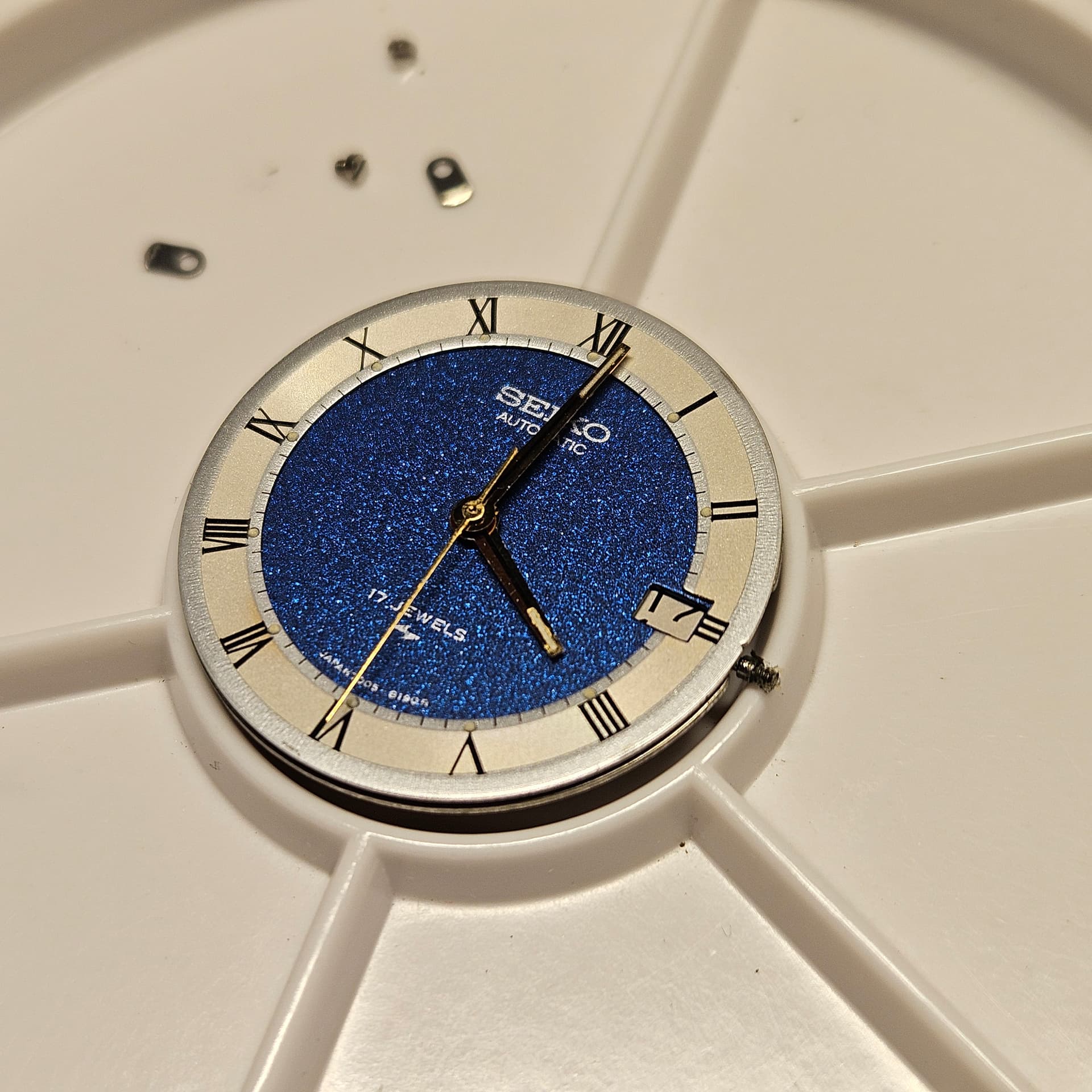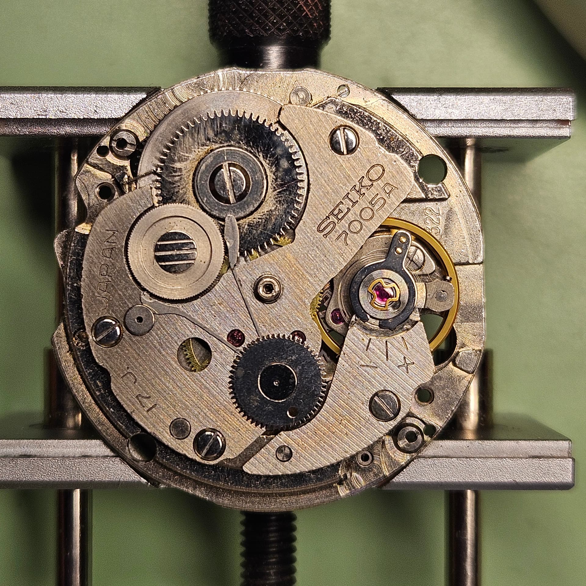 Wolter, fascinerend hoor! Bij mij blijft het bij wat poetswerk, en soms wat moeite om de techniek weer in orde te krijgen. Bij mij op de werkbank ligt een 7005 met een prachtige gouden kast en blauwe plaat met witte cijferring.